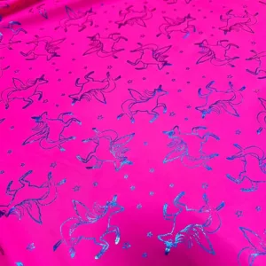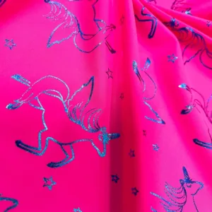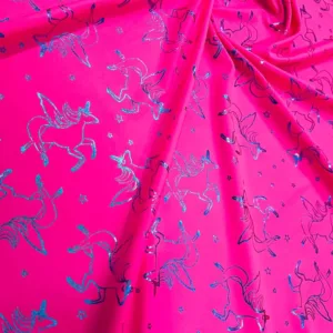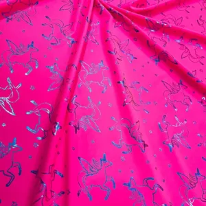 Bright Unicorns with Hot Pink background Print Nylon Lycra Spandex fabric four way Stretch by Yard for swimwear dancewear dress gymwear (203-8)