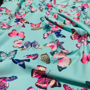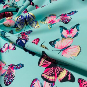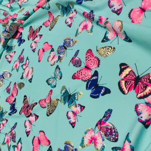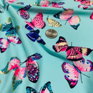 Butterfly colors and blue background print Nylon Lycra Spandex Fabric 4 Way Stretch By Yard (242-7)