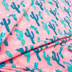 Cactus Pink background Print Nylon Lycra Spandex Fabric 4 Way Stretch for Swimwear Dancewear Sportwear
