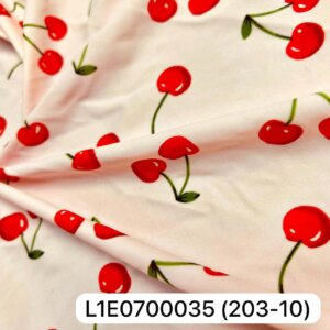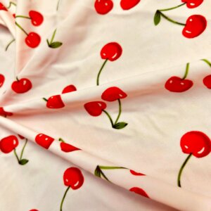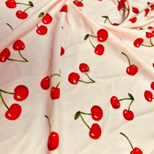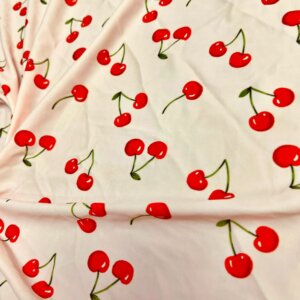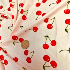 25″ Long / Cherries Baby Pink Background Print Nylon Lycra Spandex Fabric 4 Way Stretch By Yard for swimwear dancewear gymwear sportwear dress (203-10)