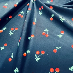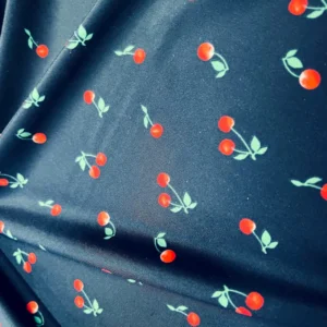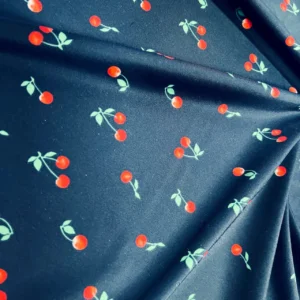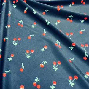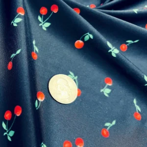 Cherries Navy Blue background Print Nylon Spandex Fabric 4 Way Stretch By Yard for swimwear dancewear gymwear sportwear dress skirt (239-9)