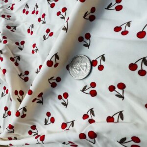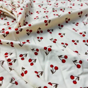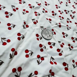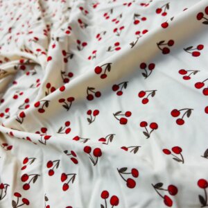 Cherries on White background Print Nylon Spandex Fabric 4 Way Stretch for swimwear dancewear gymwear sportwear dress skirt (239-13)