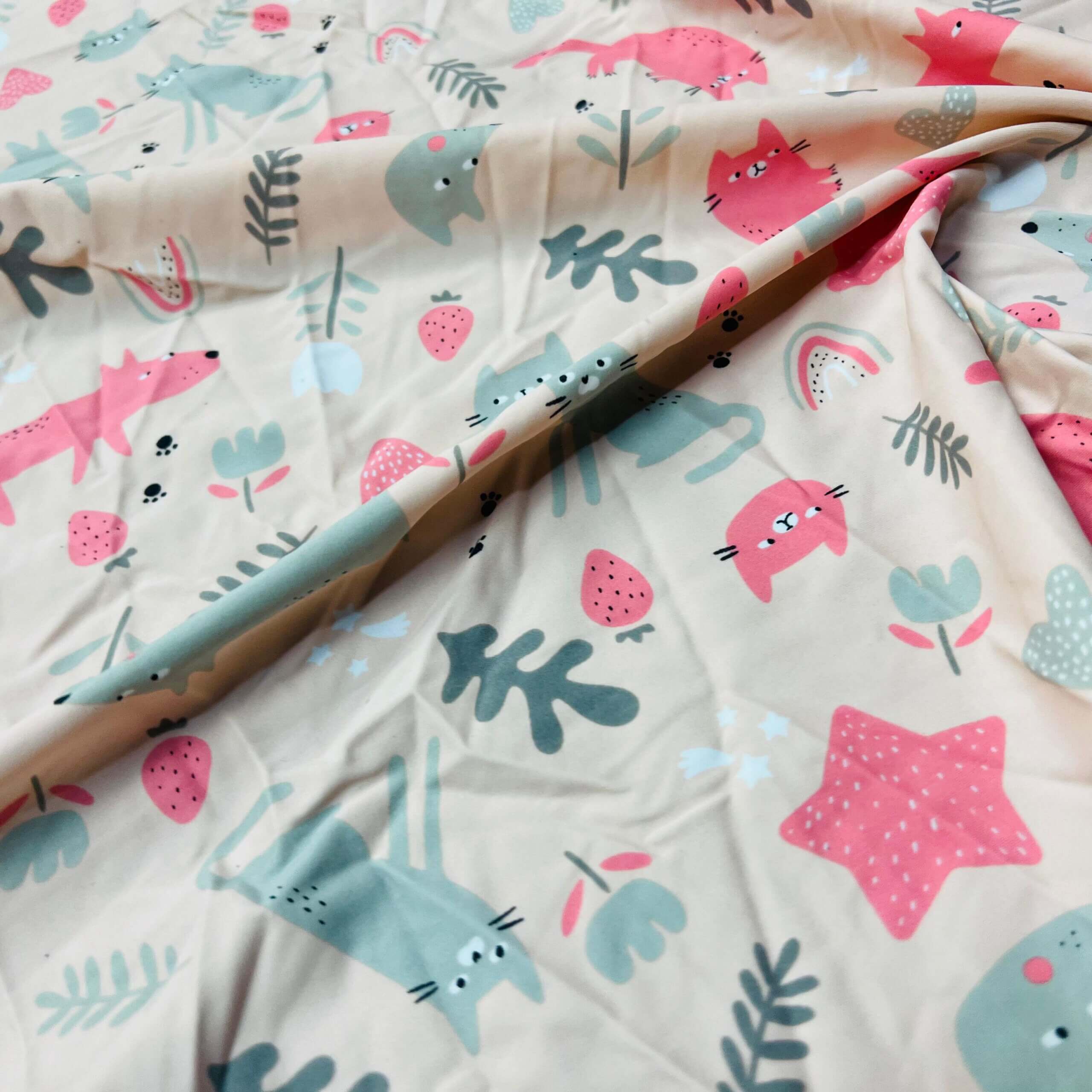 You are visualizing Children’s Animals Print Nylon Lycra Spandex Fabric 4 Way Stretch By Yard for swimwear dancewear gymwear sportwear dress