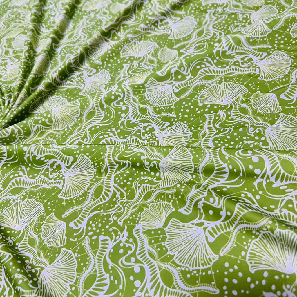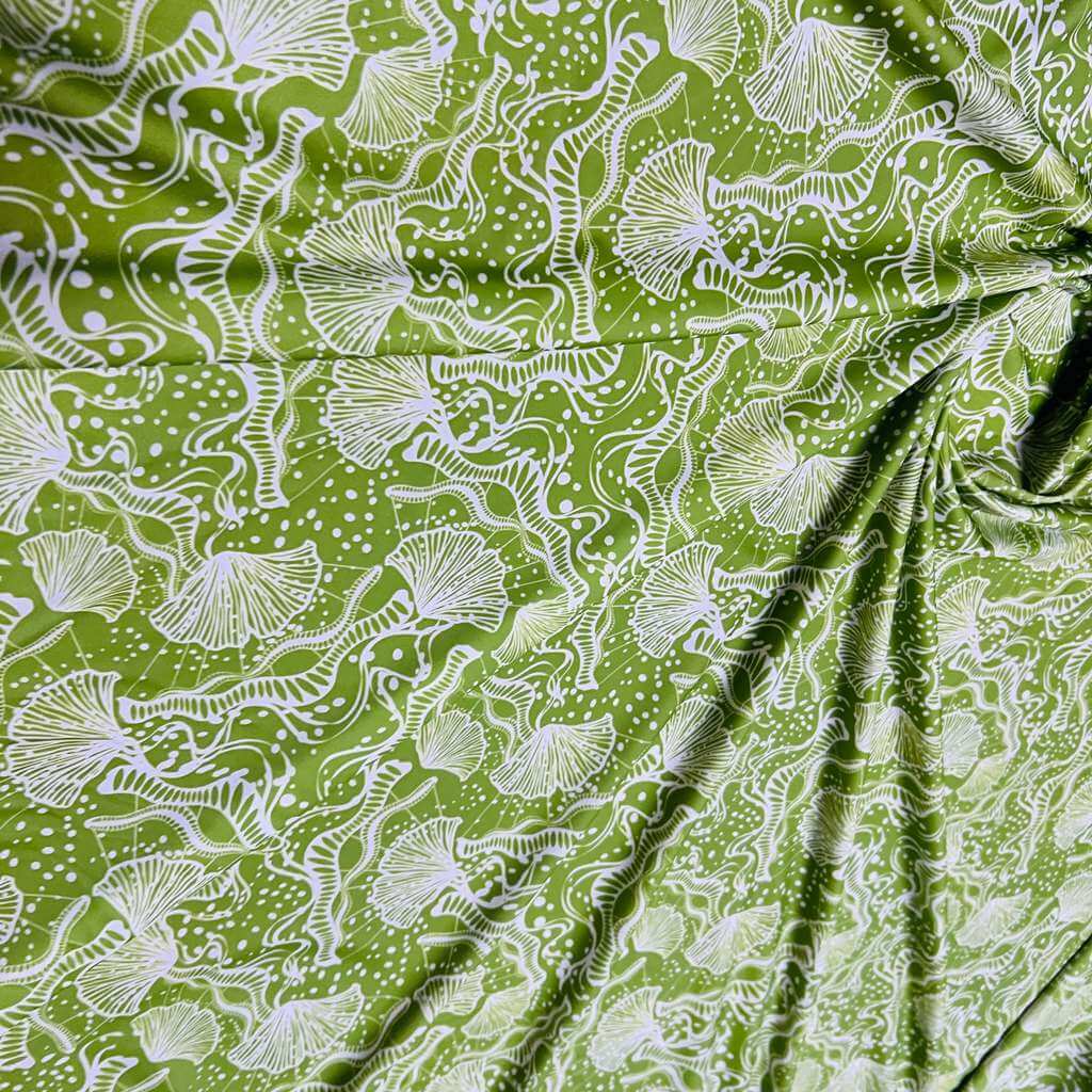 Jungle Green Leaves Print Nylon Lycra Spandex Fabric 4 Way Strech by Yard for swimwear dancewear dress gymwear (159) (40)