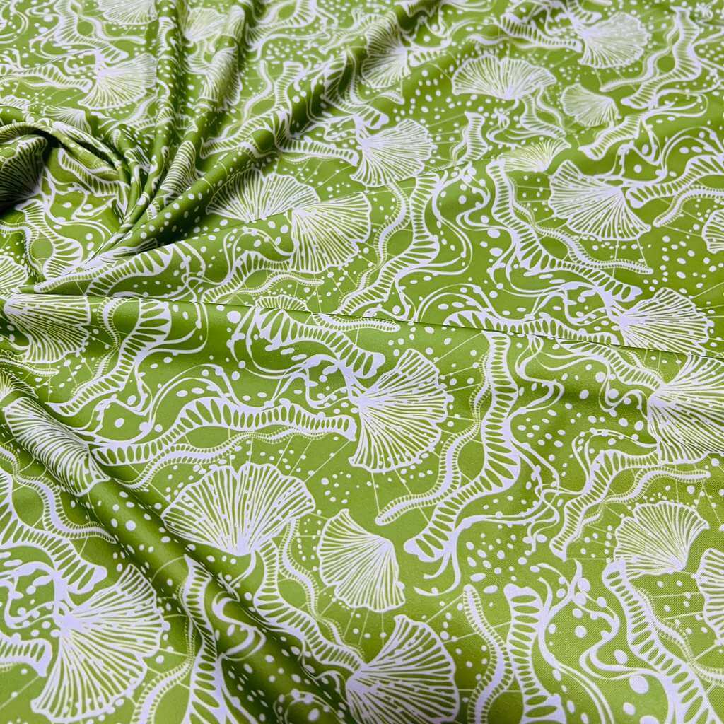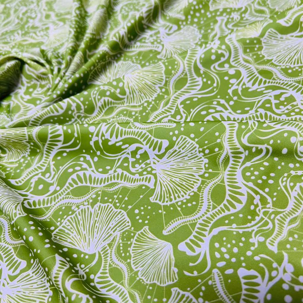 Clams and seaweed print Nylon Nylon Lycra Spandex Fabric 4 Way Stretch By Yard for swimwear dancewear gymwear sportwear dress (115-3)