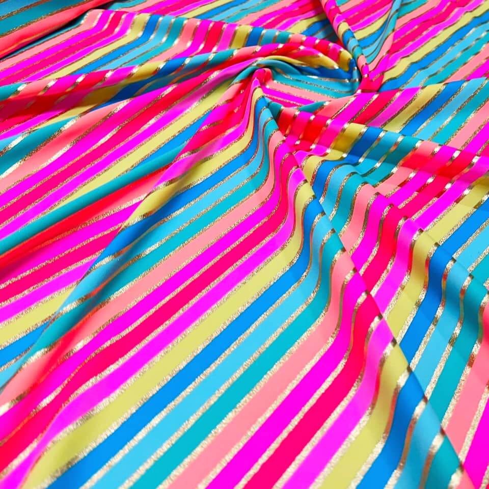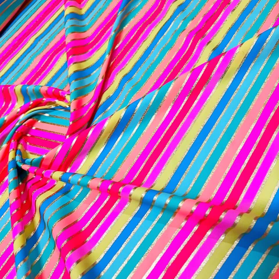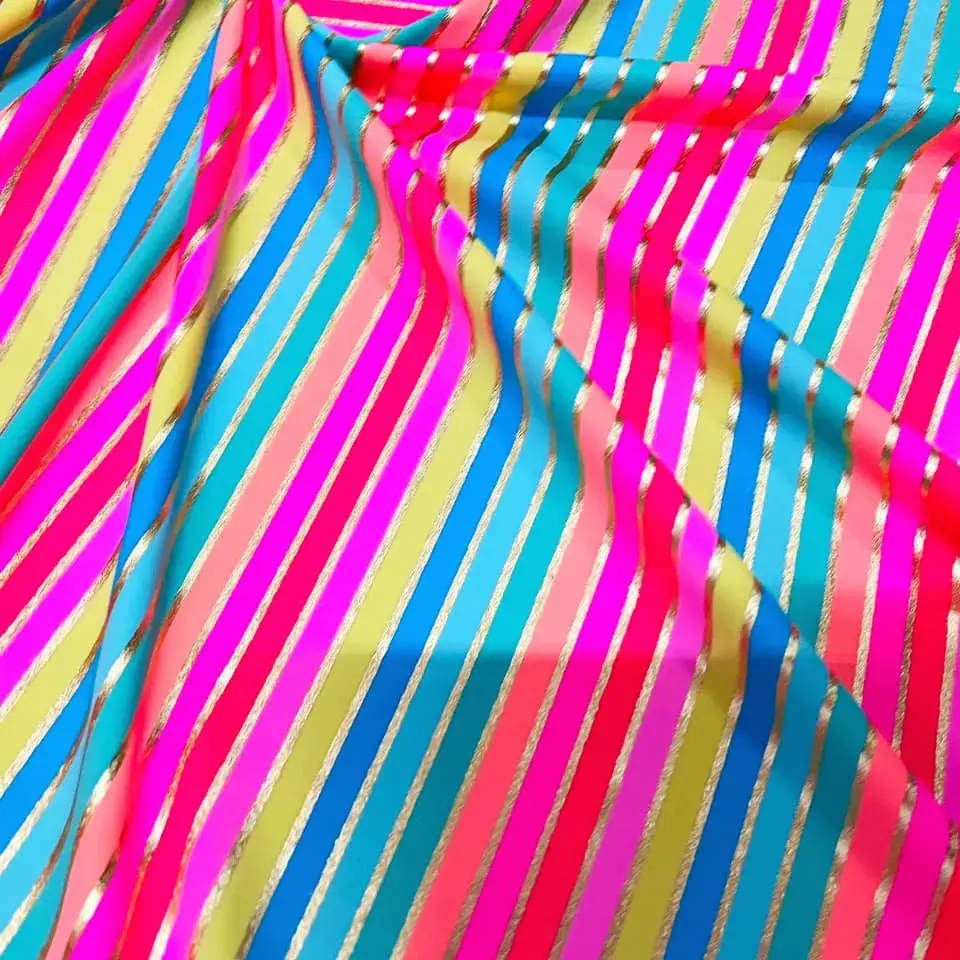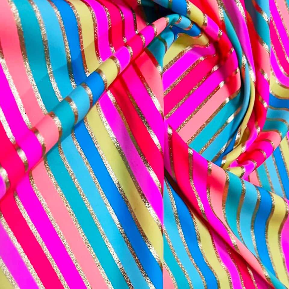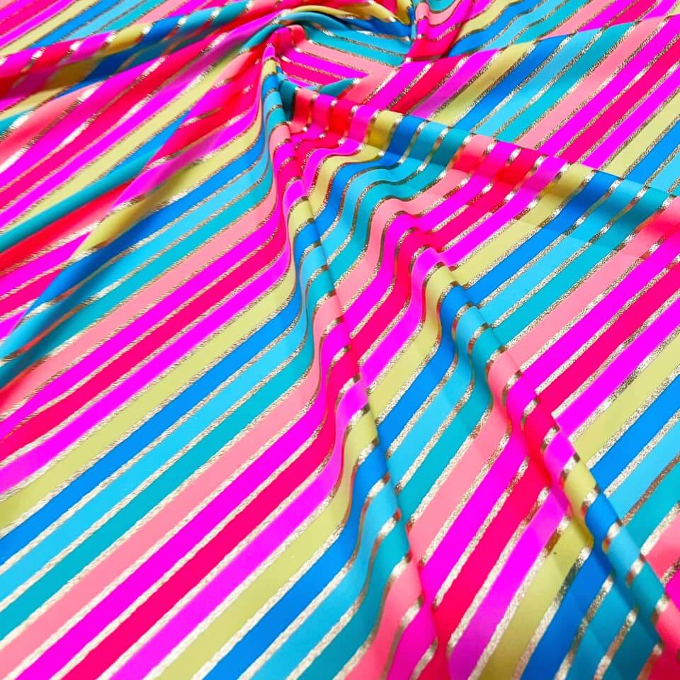 You are viewing Colored and Metallic Lines Print Nylon Lycra Spandex Fabric 4 Way Stretch by Yard for swimwear dancewear sportwear