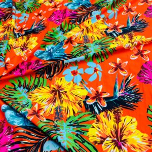 Colored Cayenne Orange background Print Nylon Lycra Spandex Fabric 4 Way Stretch By Yard for swimwear dancewear gymwear sportwear dress