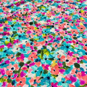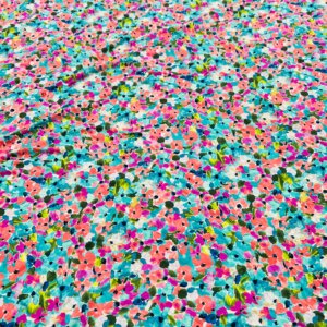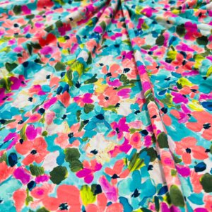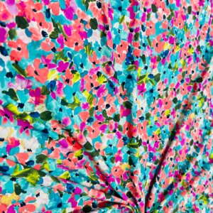 Colored Flowers with Blue Background print Nylon Lycra Spandex Fabric 4 Way Strech by Yard for swimwear dancewear dress gymwear