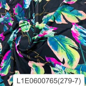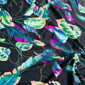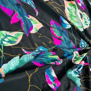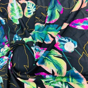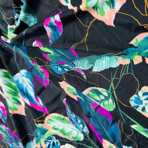 Colored Leaves Black background Print Nylon Lycra Spandex Fabric 4 Way Stretch By Yard for swimwear dancewear gymwear sportwear dress