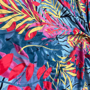 Colored Leaves Blue Background print Nylon Spandex Fabric 4 Way Stretch for swimwear dancewear gymwear sportwear dress skirt (204-3)