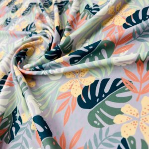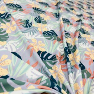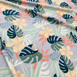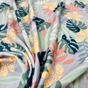 30″ Long Colored Leaves Gray Background Print Nylon Lycra Spandex Fabric 4 Way Stretch for swimwear dancewear gymwear sportwear dress (239-7)