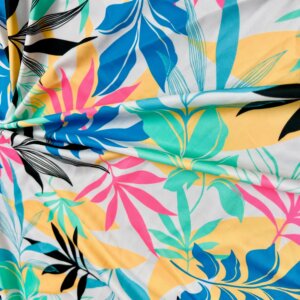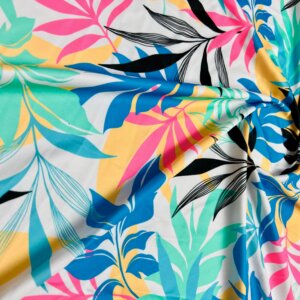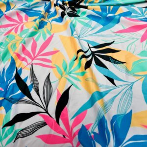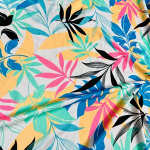 Colored Leaves White background Print Nylon Lycra Spandex Fabric 4 Way Stretch By Yard for swimwear dancewear gymwear sportwear dress