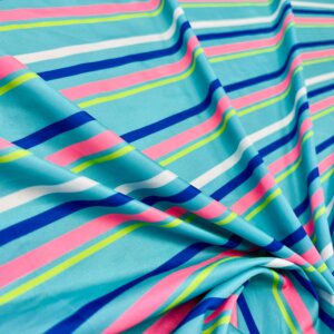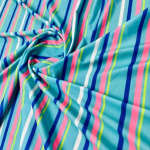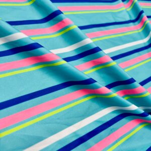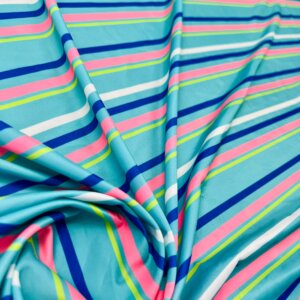 Colored Lines Blue Background Print Nylon Lycra Spandex Fabric 4 Way Stretch By Yard for swimwear dancewear gymwear sportwear dress (239-7)