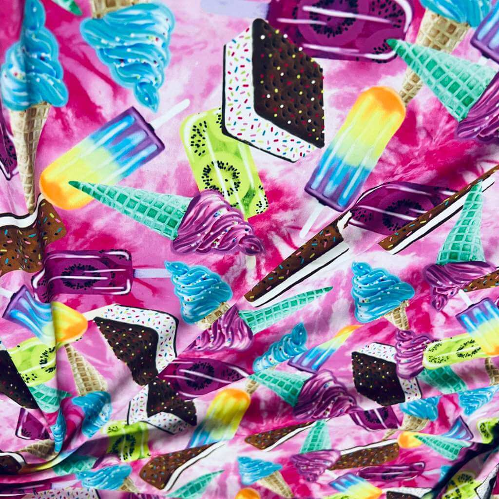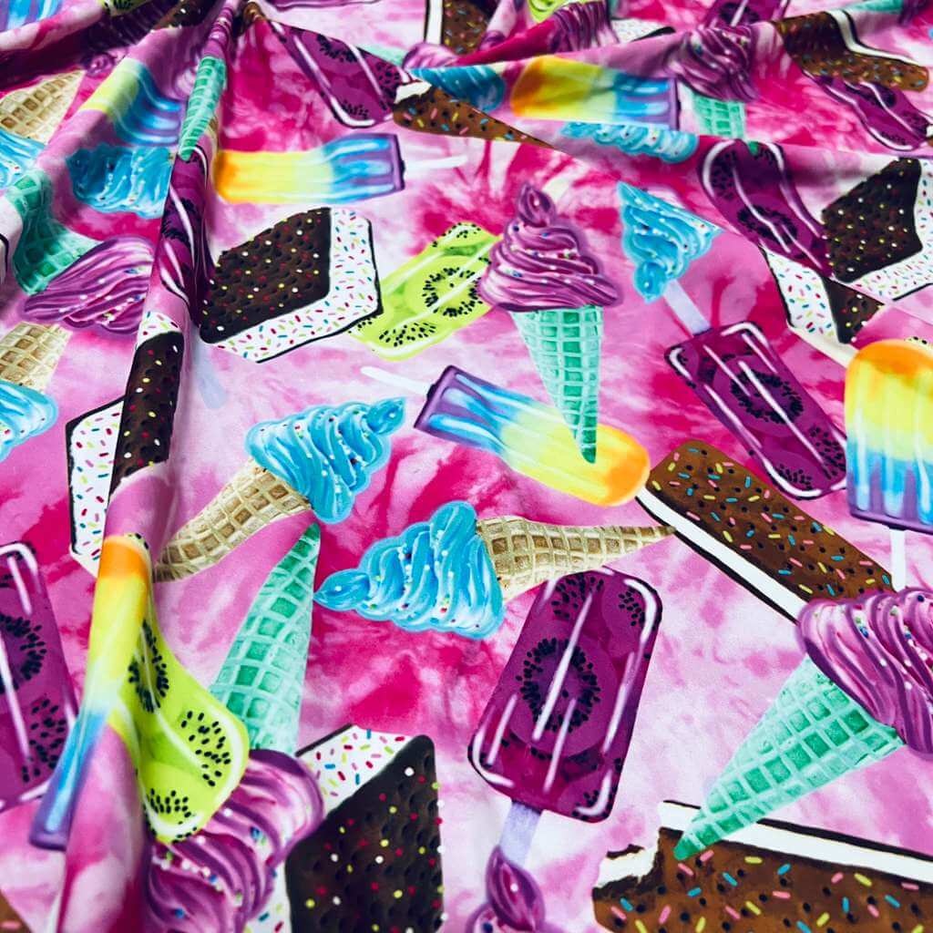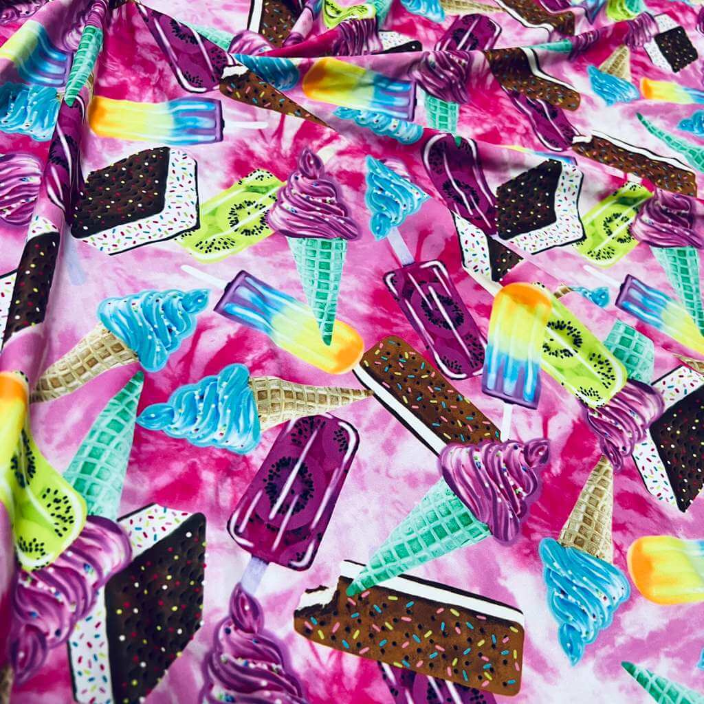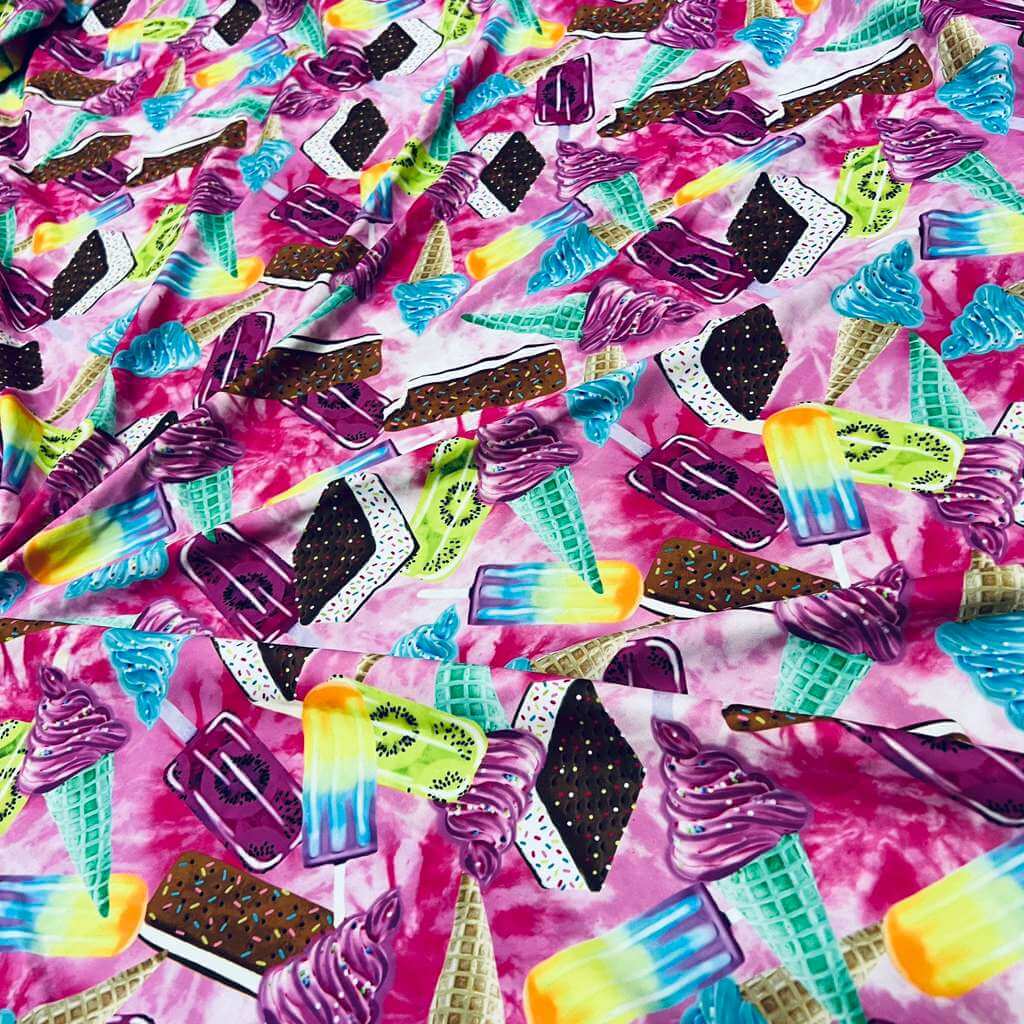 Colored Neon Ice Cream print Nylon Nylon Lycra Spandex Fabric 4 Way Stretch By Yard for swimwear dancewear gymwear sportwear dress (SU1)(32)
