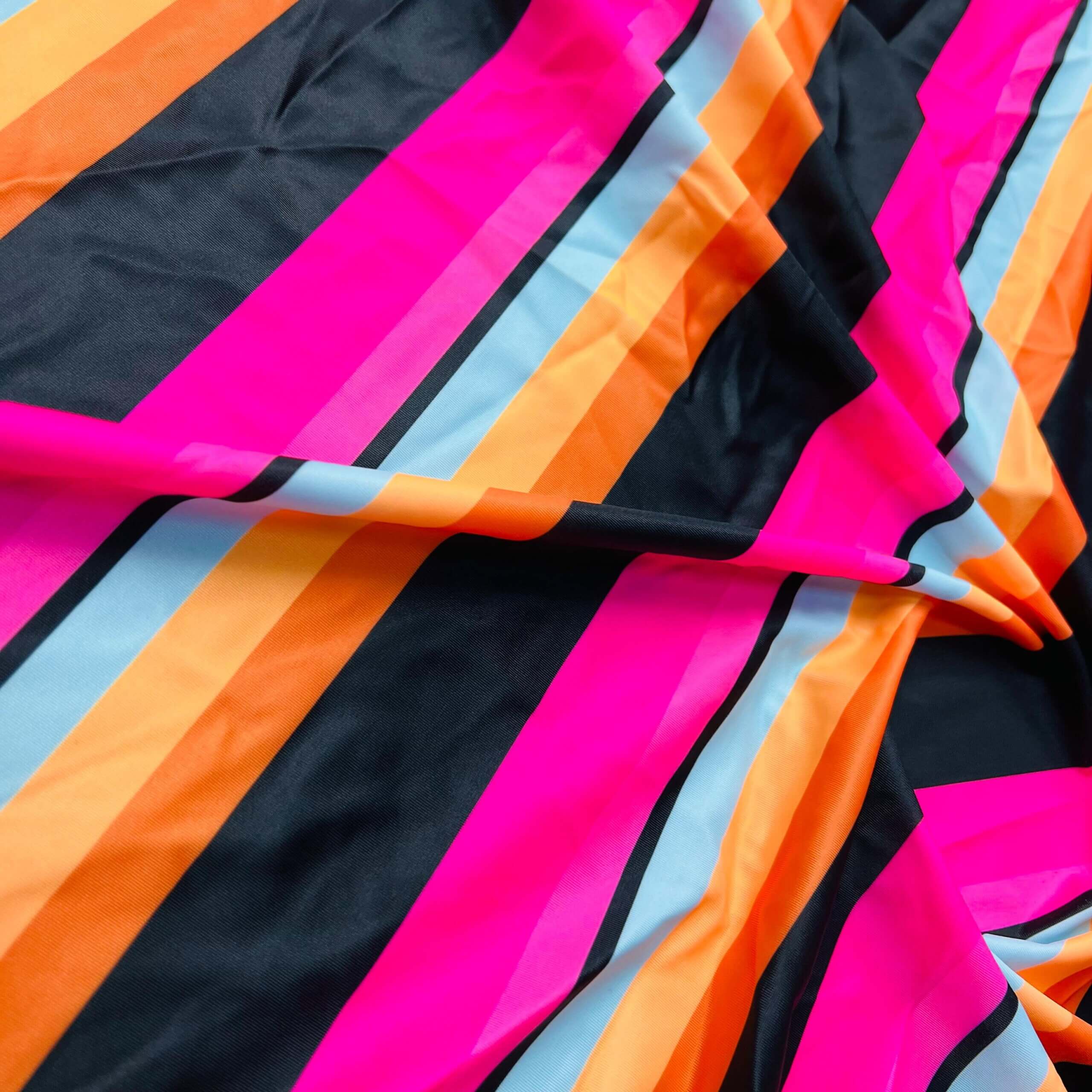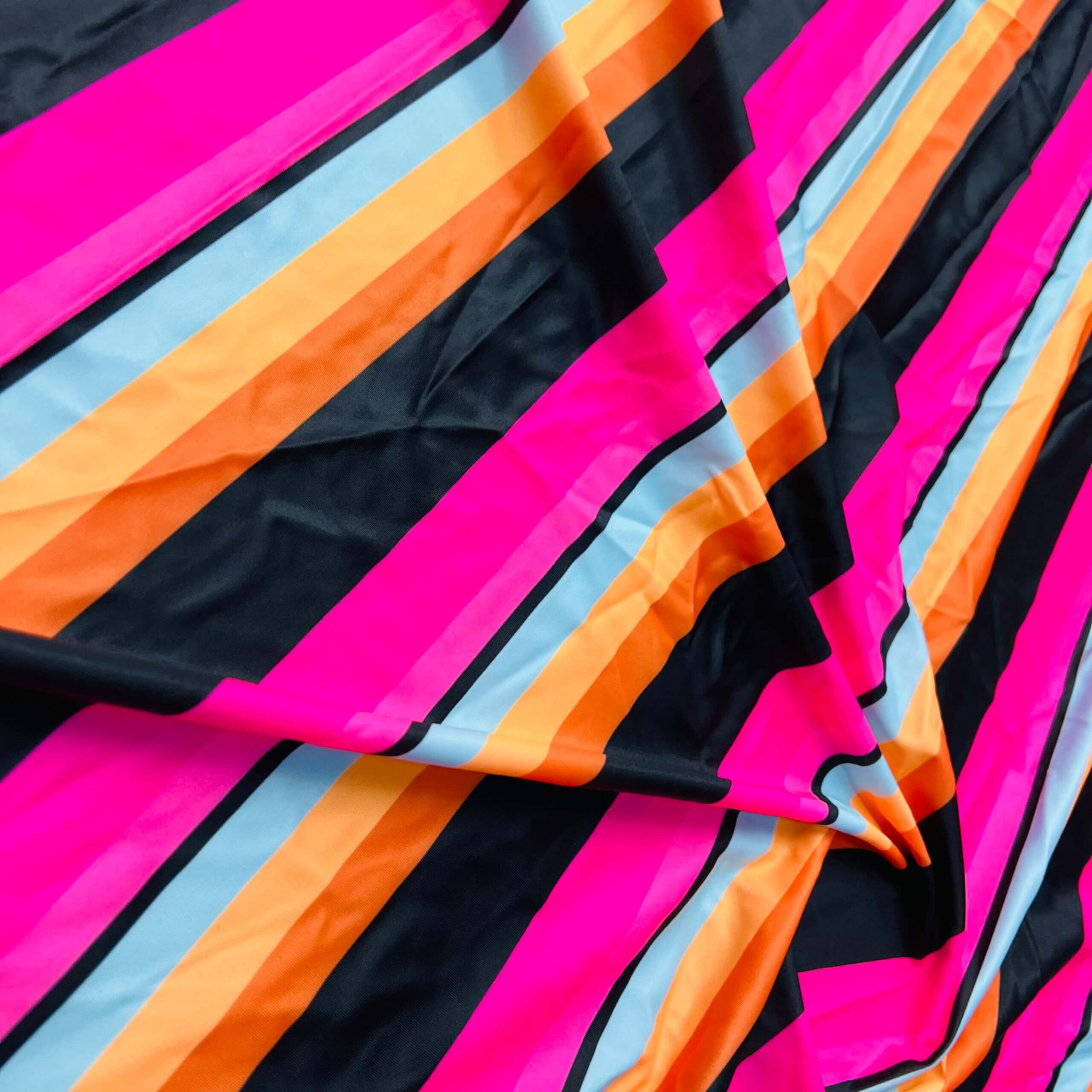 Colored Stripes Print Nylon Lycra Spandex Fabric 4 Way Stretch By Yard for swimwear dancewear gymwear sportwear dress (203-8)