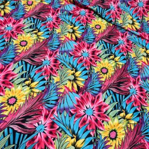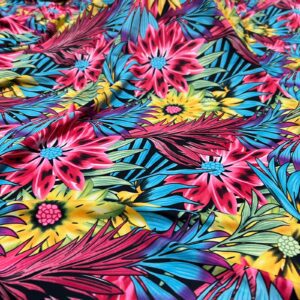 Colored Sunflowers Print fabric 4 way Spandex Lycra Fabric sold by yard for swimwear dancewear dress gymwear (242-11)