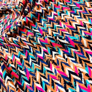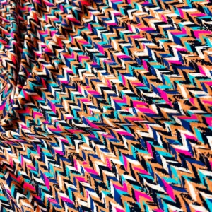 Colored Zig Zag Print Nylon Spandex Fabric 4 Way Stretch By Yard for swimwear dancewear gymwear sportwear dress skirt (239-11)