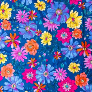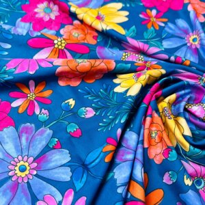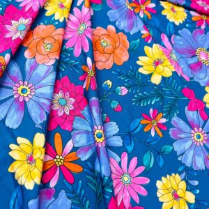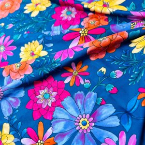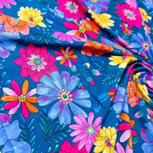 Colorful Flowers Navy Blue Background Print Nylon Lycra Spandex Fabric 4 Way Stretch By Yard for swimwear dancewear gymwear sportwear dress (203-1)