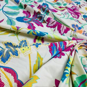 Colorful Flowers White Background Print Nylon Lycra Spandex Fabric 4 Way Stretch By Yard for swimwear dancewear gymwear sportwear dress (239-5)