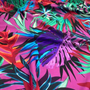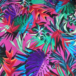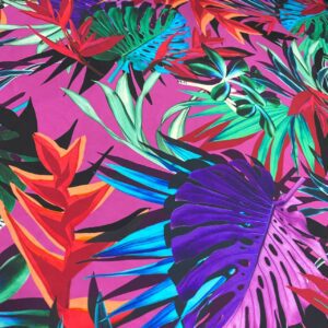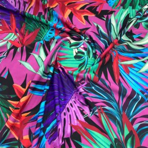 Colorful Leaves Purple background Print Nylon Lycra Spandex Fabric 4 Way Strech by Yard for swimwear dancewear dress gymwear (279-9)