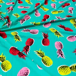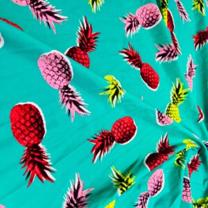 Colorful Pineapples Blue Background Print Nylon Lycra Spandex Fabric 4 Way Stretch By Yard for swimwear dancewear gymwear sportwear dress (203-5)