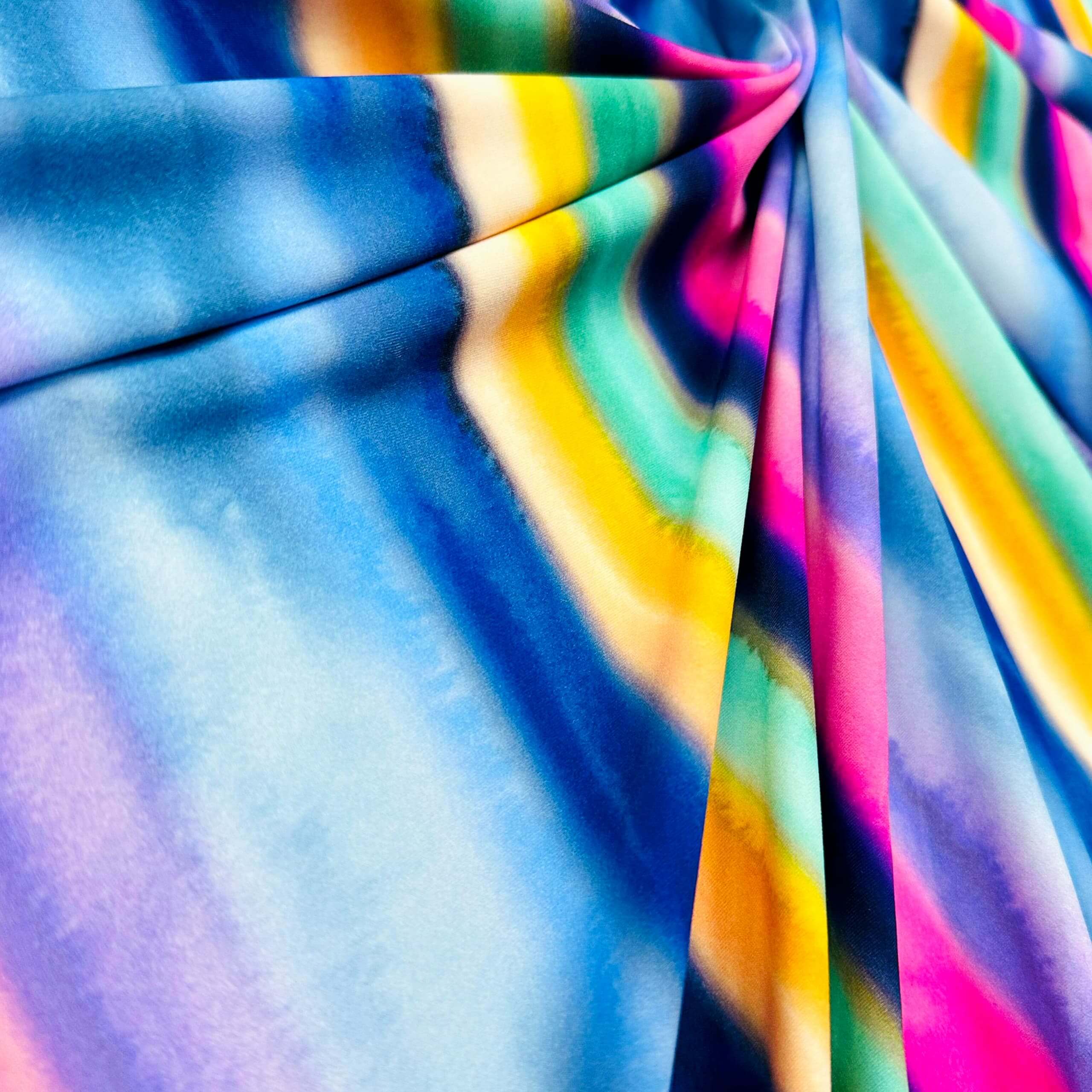 Colorful Stripes Print Nylon Lycra Spandex Fabric 4 Way Stretch By Yard for swimwear dancewear gymwear sportwear dress skirt (158-1)
