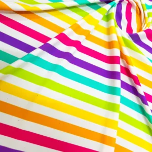18″ Long / Colorful Stripes Print Nylon Spandex Fabric 4 Way Stretch By Yard for swimwear dancewear (204-9)