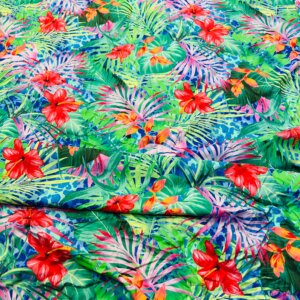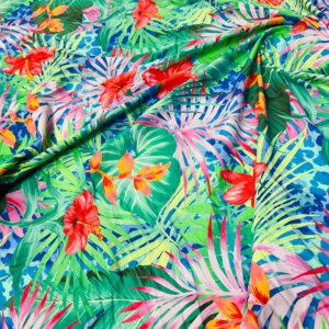 9″ Long / Colorful Tropical Flowers Print Nylon Lycra Spandex Fabric 4 Way Stretch By Yard for swimwear dancewear gymwear sportwear dress (279-1)