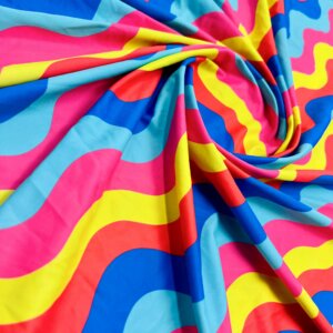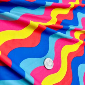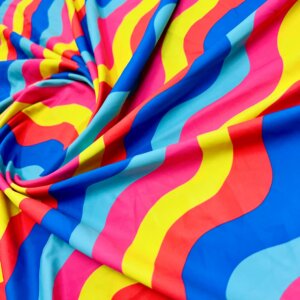 Colorful Wavy Stripes Print Nylon Lycra Spandex Fabric 4 Way Stretch By Yard for swimwear dancewear gymwear sportwear dress (157-7)