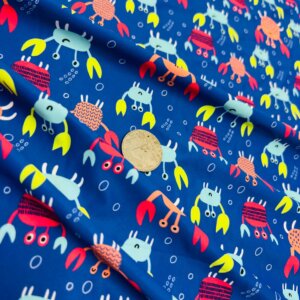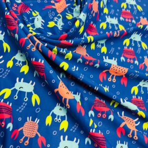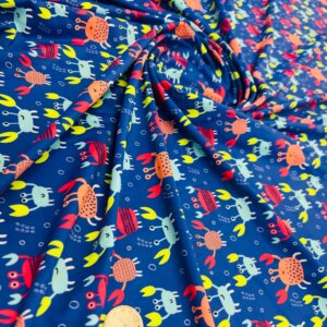 Crabs Blue Background Print Nylon Lycra Spandex Fabric 4 Way Stretch By Yard for swimwear dancewear gymwear sportwear dress (239-5)