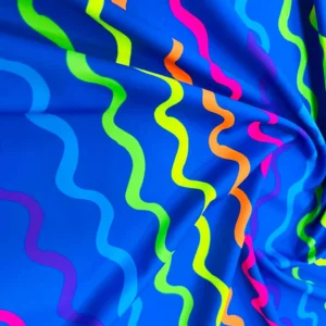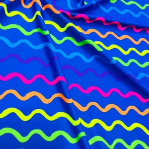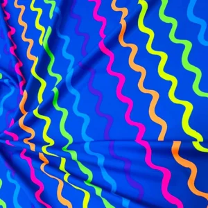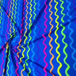 Curved Colored Lines Print Nylon Spandex Fabric 4 Way Stretch By Yard for swimwear dancewear gymwear sportwear dress skirt