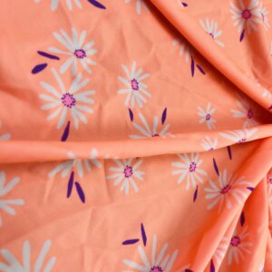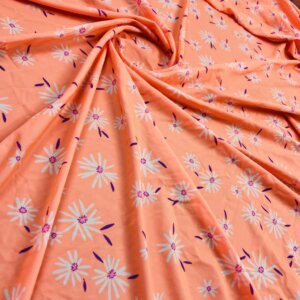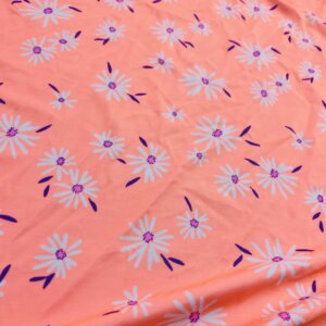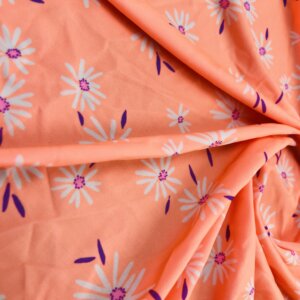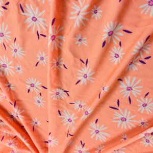 Daisies Flowers Orange Background print Nylon lycra Spandex Fabric 4 Way Stretch for swimwear dancewear gymwear sportwear dress skirt (157-1)
