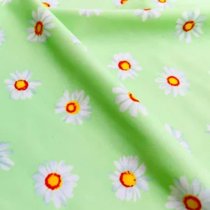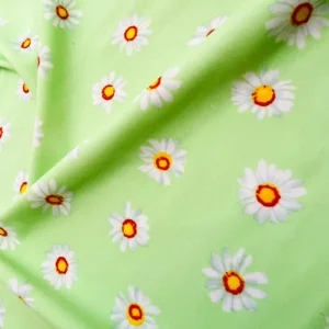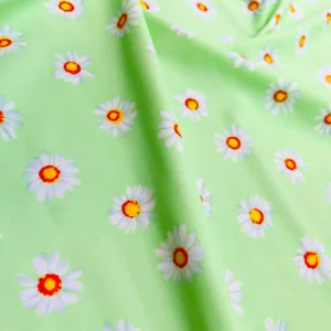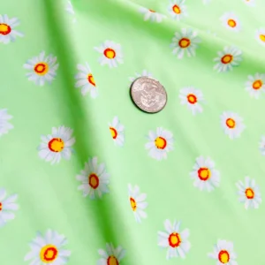 Daisies Green background Print Nylon Spandex Fabric 4 Way Stretch By Yard for swimwear dancewear gymwear sportwear dress skirt