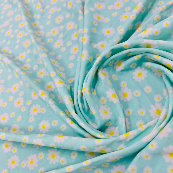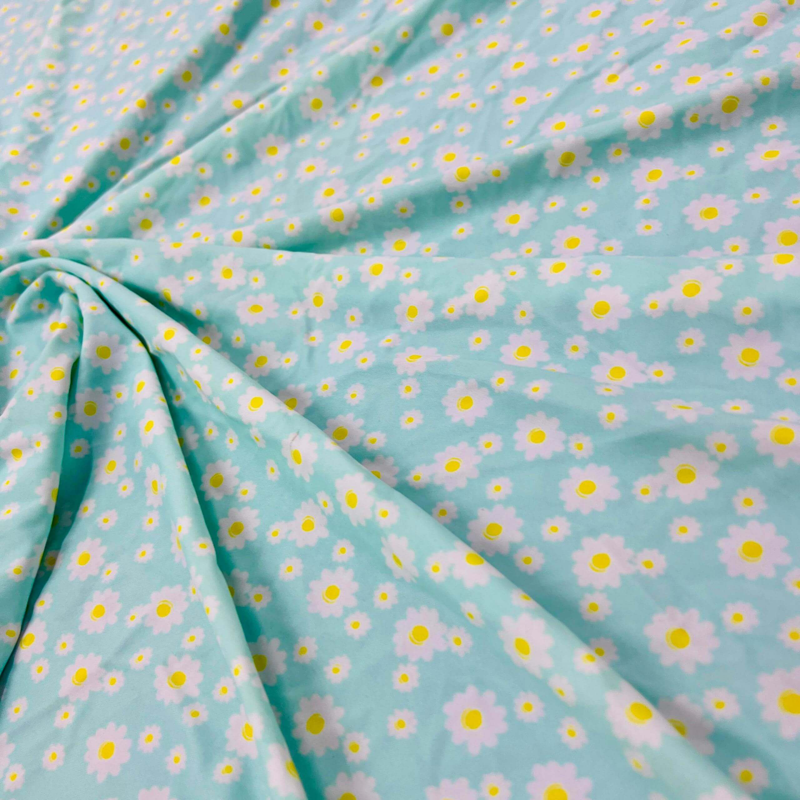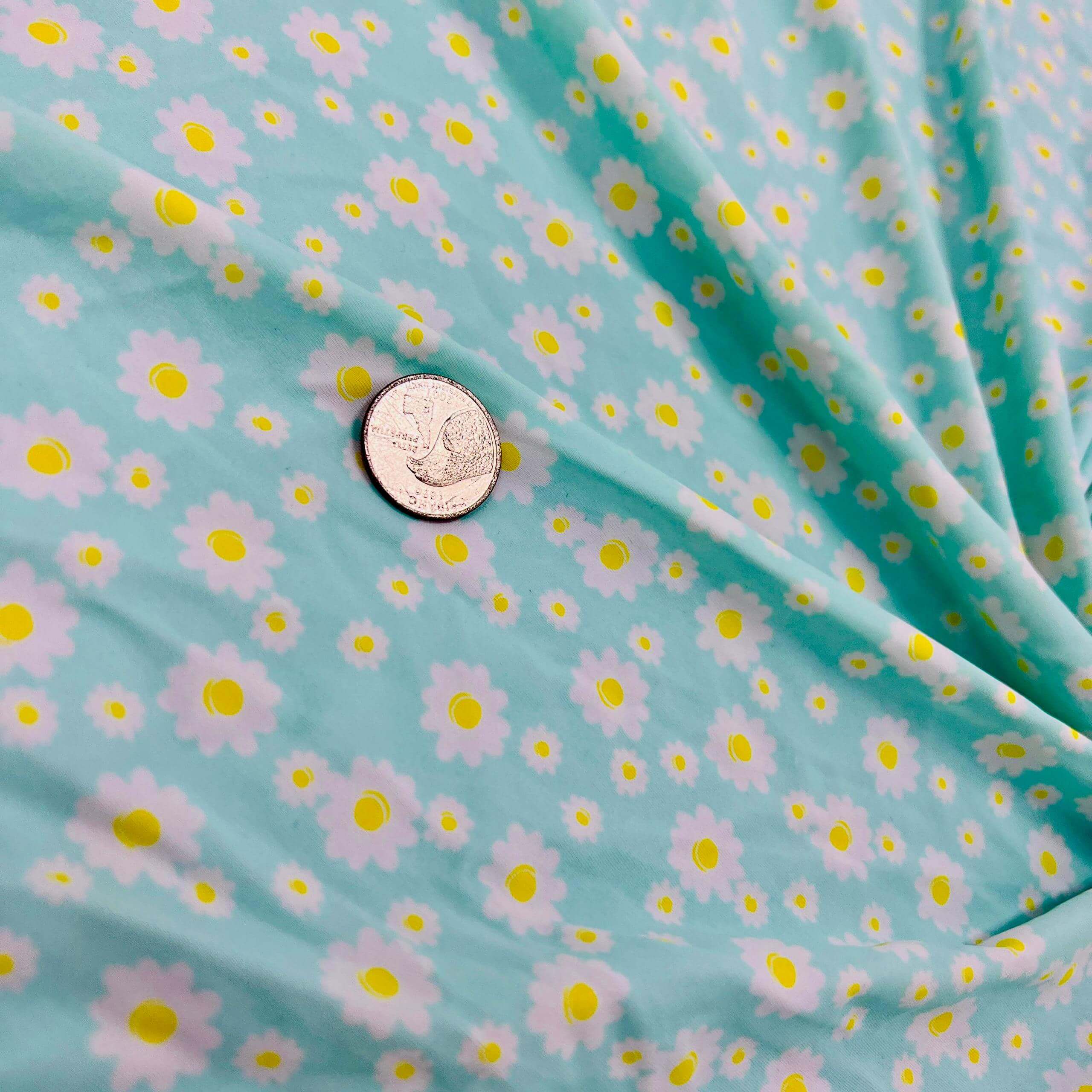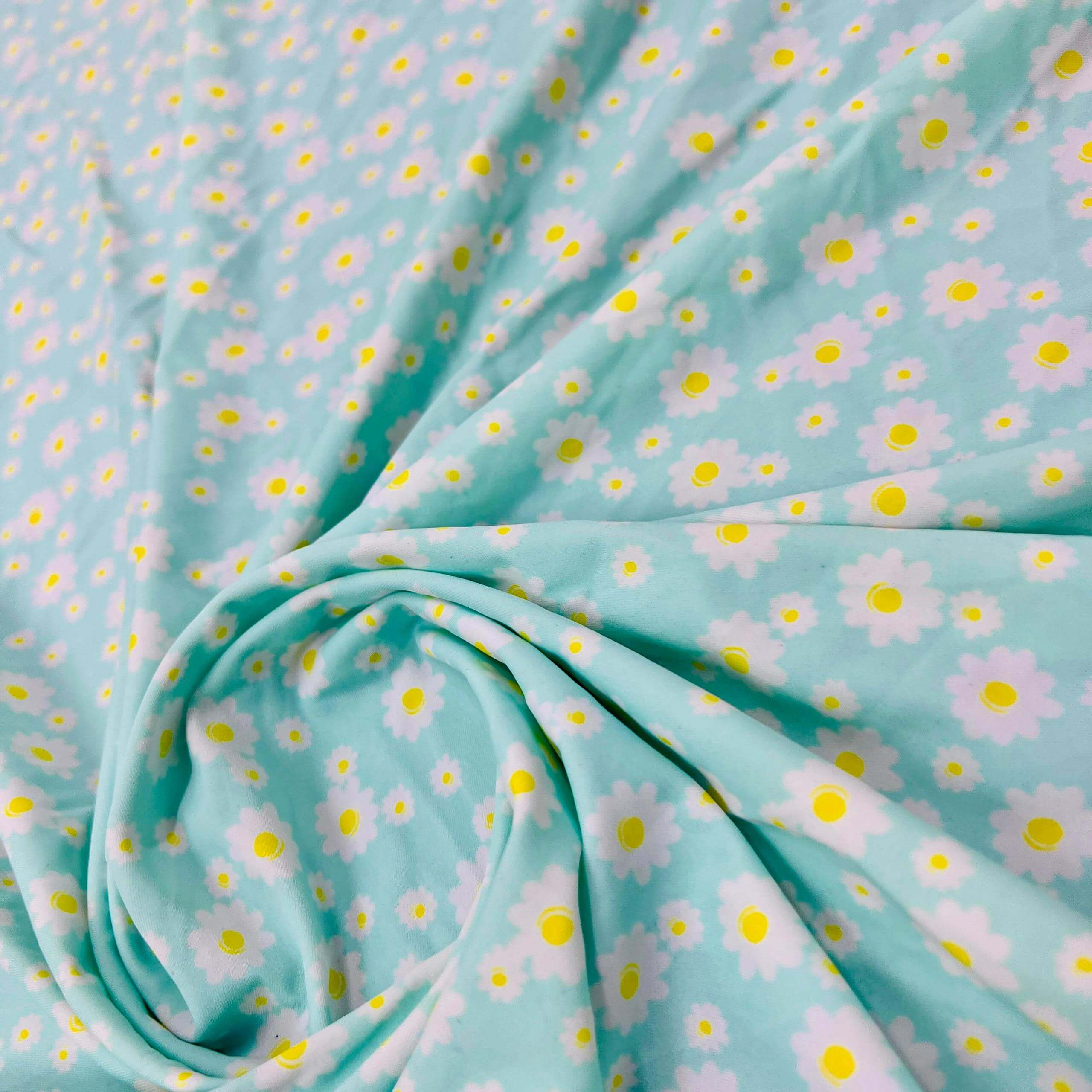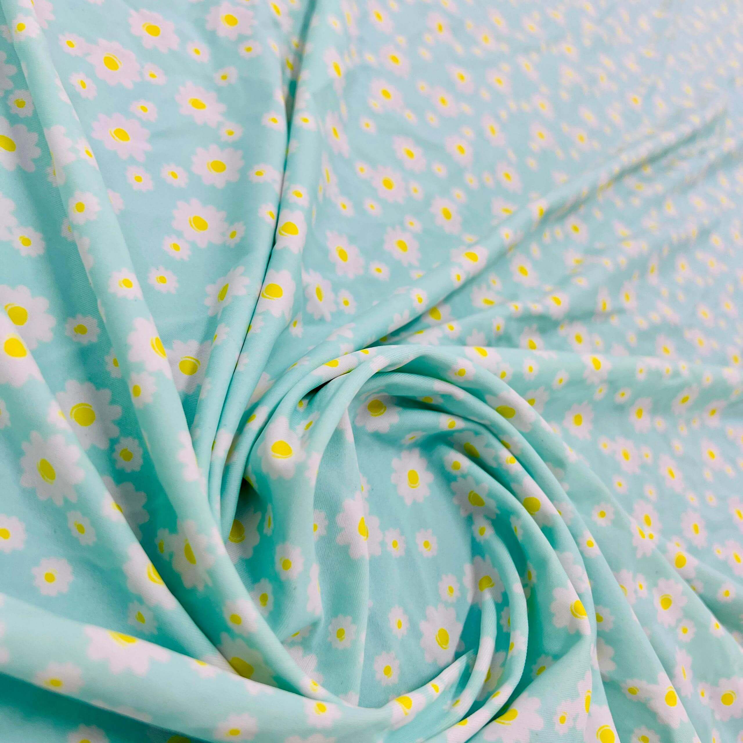 Daisies Sky Blue Background Print Nylon Lycra Spandex Fabric 4 Way Stretch By Yard for swimwear dancewear gymwear sportwear dress (239-7)