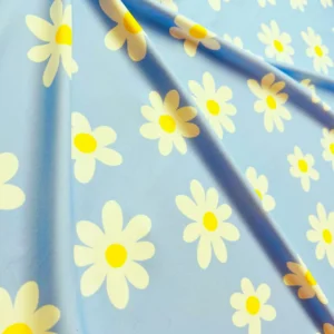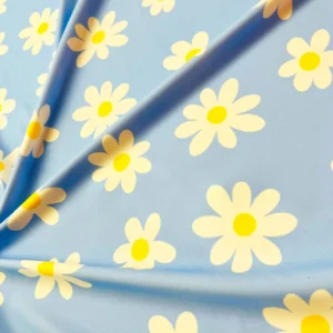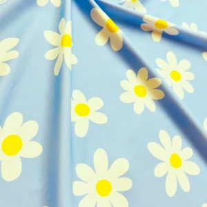 Daisies Sky Blue Background Print Nylon Spandex Fabric 4 Way Stretch By Yard for swimwear dancewear gymwear sportwear dress skirt (204-1)
