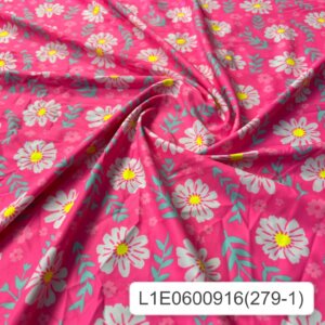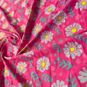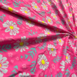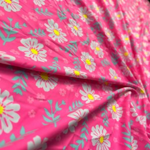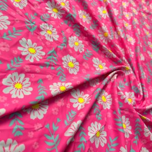 Daisies with Leaves Pink Background Print Nylon Lycra Spandex Fabric 4 Way Stretch By Yard for swimwear dancewear gymwear sportwear dress (279-1)