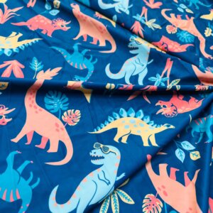 Dinosaurs Blue Background Print Nylon Spandex Fabric 4 Way Stretch for swimwear dancewear gymwear sportwear dress skirt (239-9)