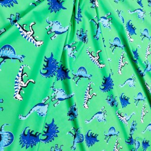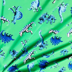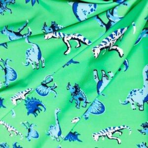 Dinosaurs Green background Print Nylon Lycra Spandex Fabric 4 Way Stretch By Yard for swimwear dancewear gymwear sportwear dress skirt (203-3)