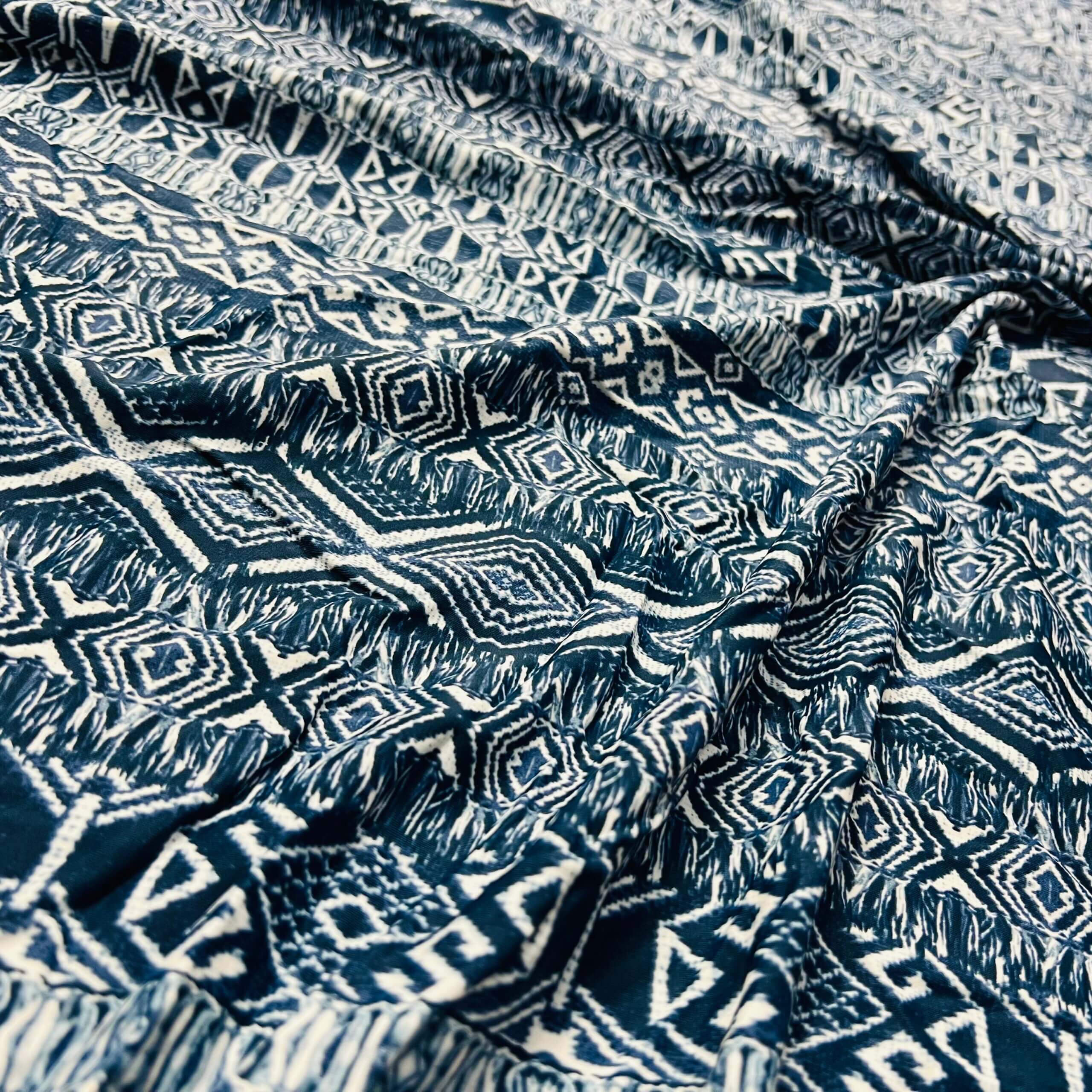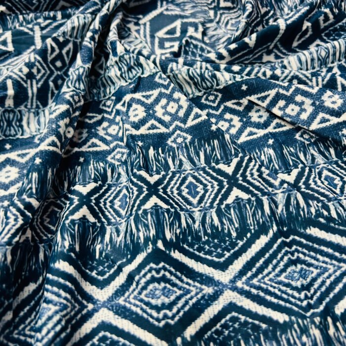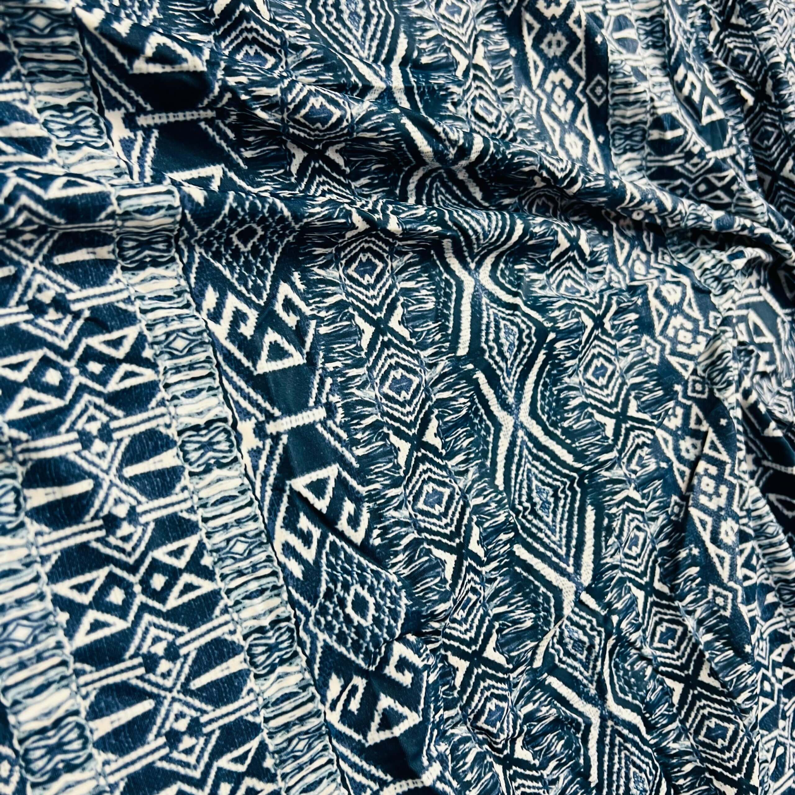 Ethnic Blue Print Nylon Spandex Fabric 4 Way Stretch for swimwear dancewear gymwear sportwear dress skirt (204-10)