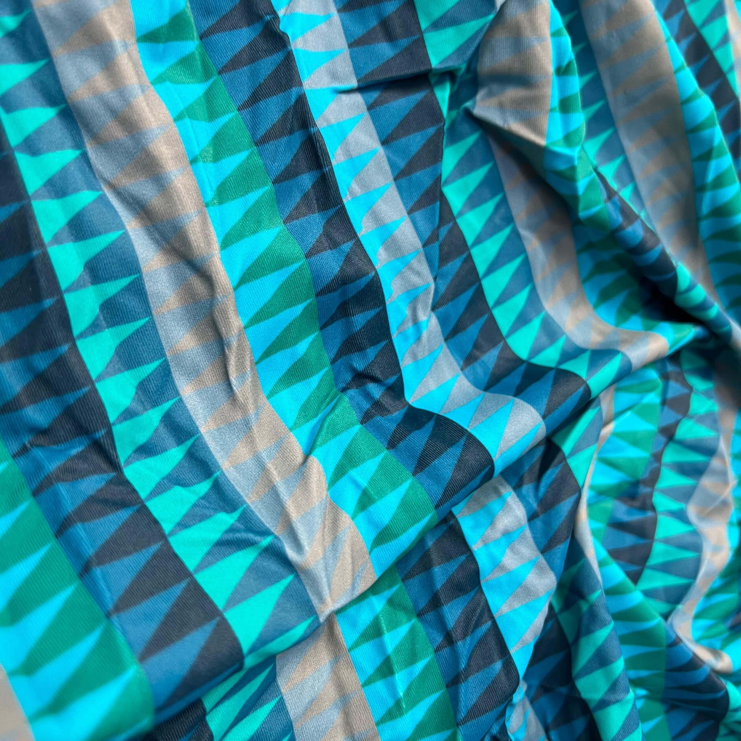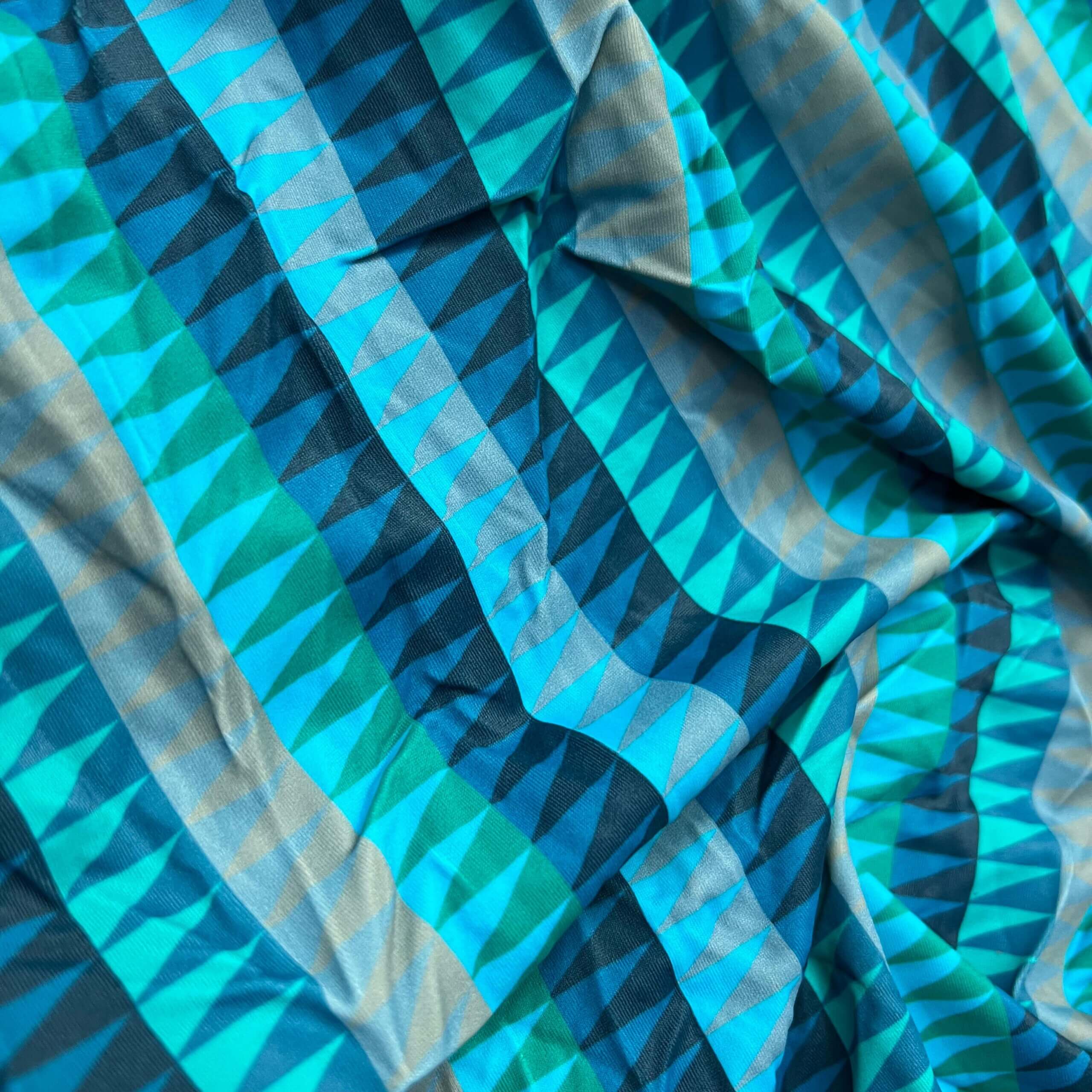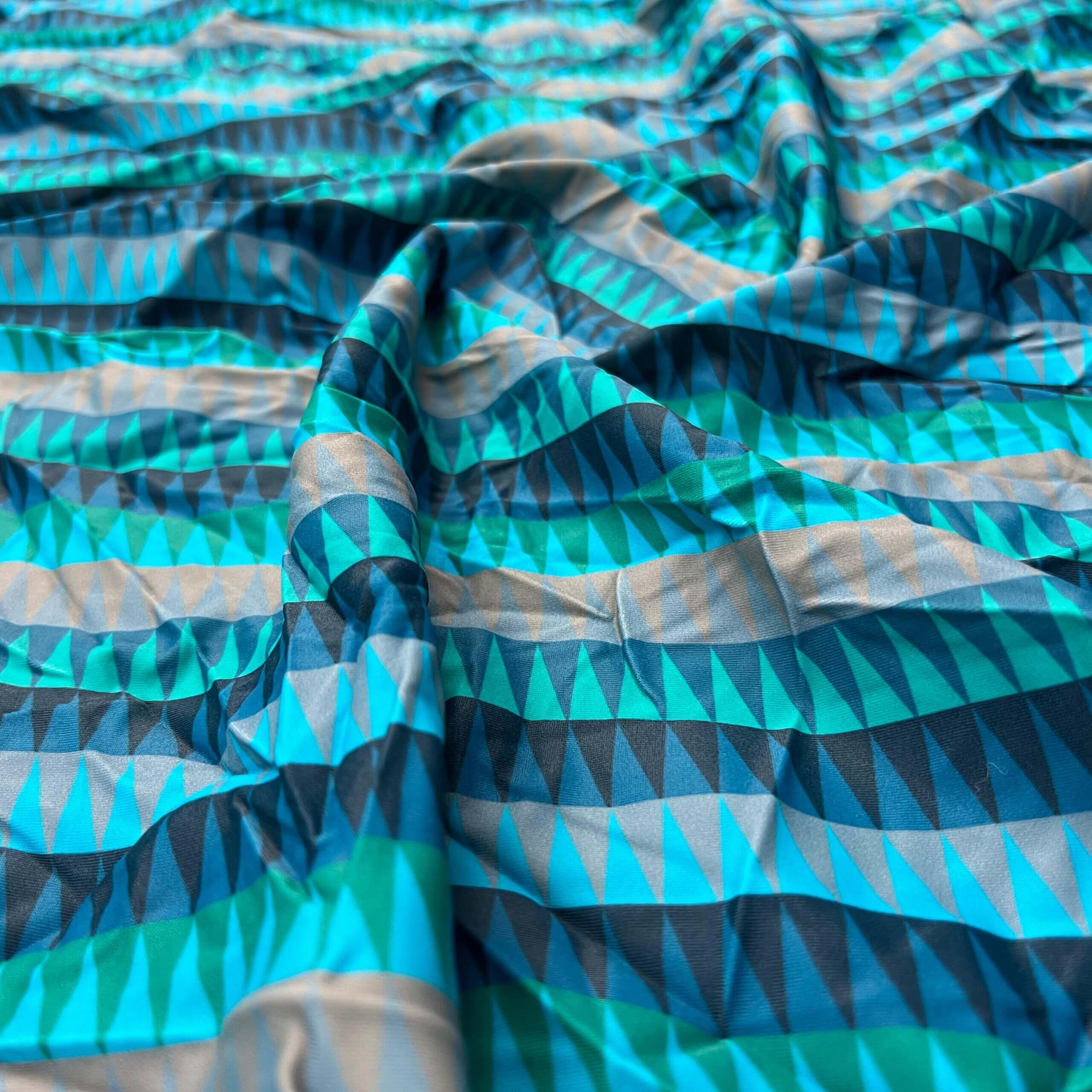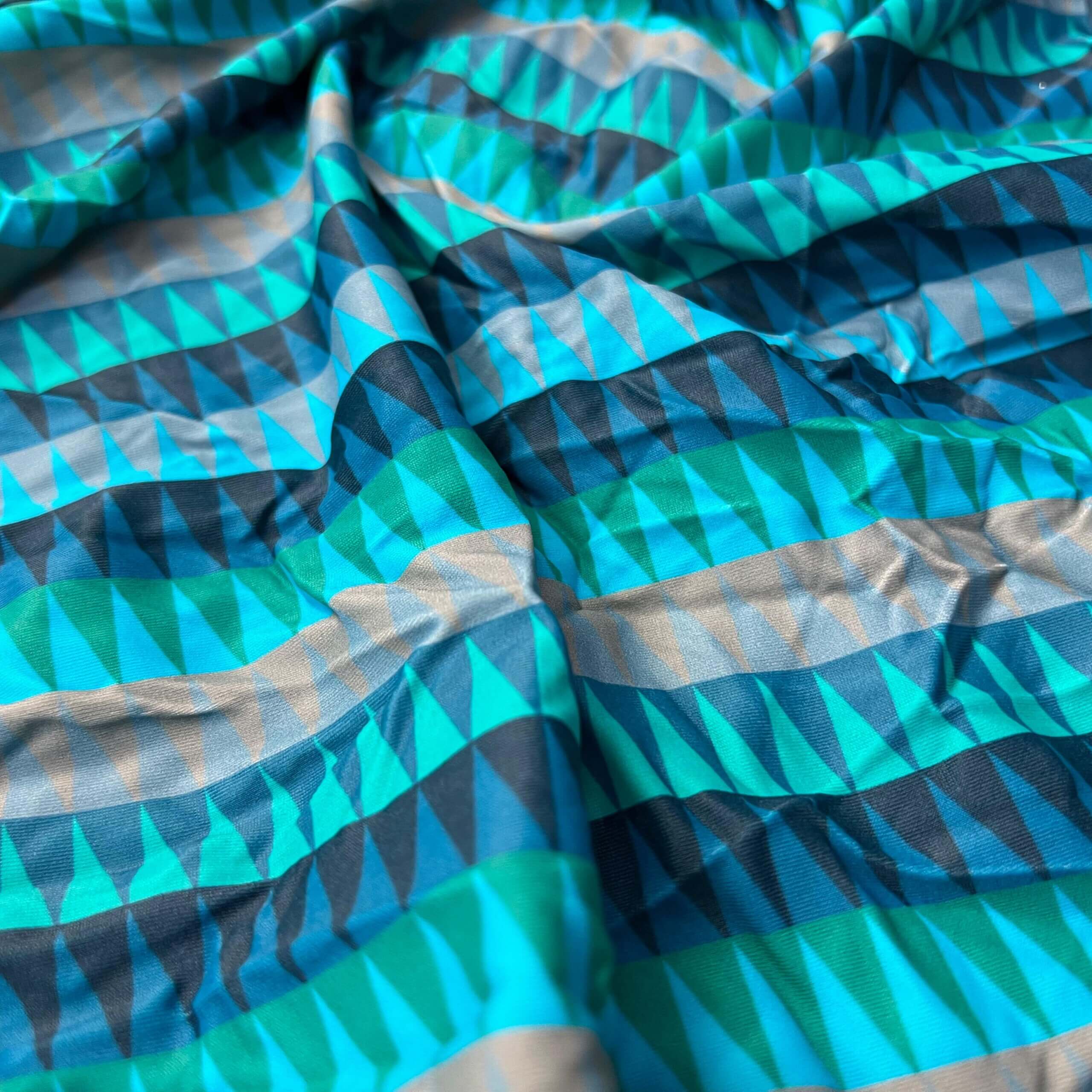 Ethnic Blue Triangles Print Nylon Lycra Spandex Fabric 4 Way Stretch By Yard for swimwear dancewear gymwear sportwear dress (204-11)