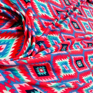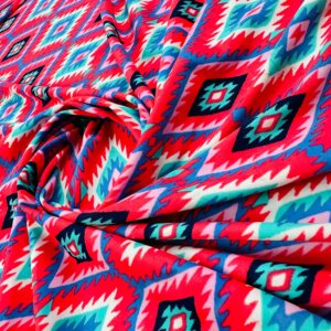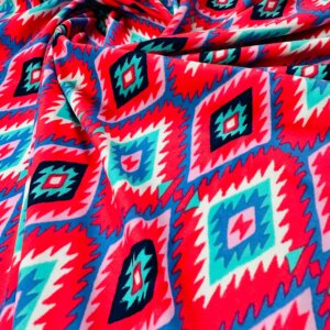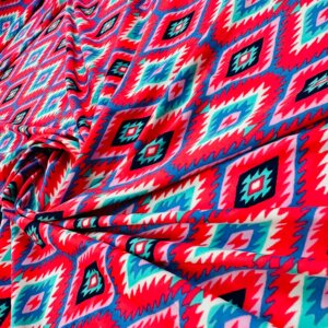 Ethnic Coral and Aquamarine Print Nylon Lycra Spandex Fabric 4 Way Stretch By Yard for swimwear dancewear gymwear sportwear dress skirt (203-5)