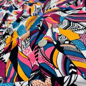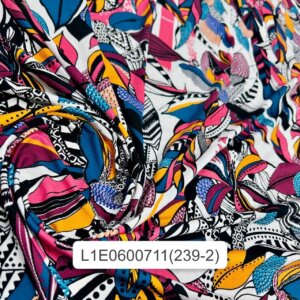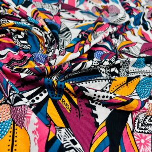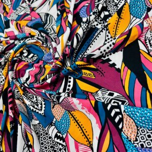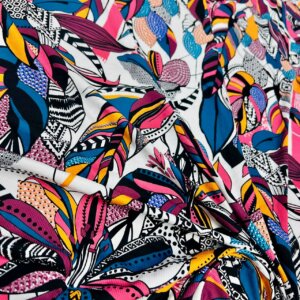 Ethnic Flowers and Leaves Print Nylon Lycra Spandex Fabric 4 Way Stretch By Yard