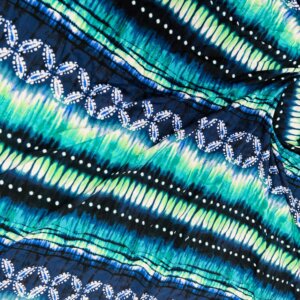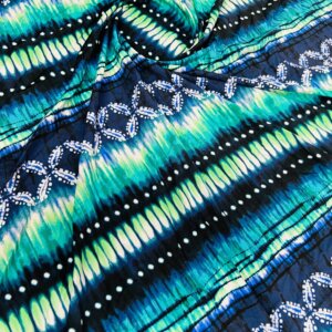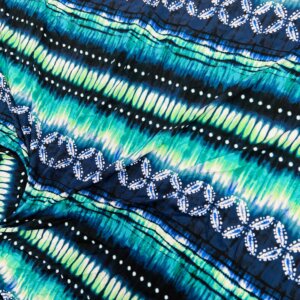 Ethnic Green and Blue with Black Print Nylon Lycra Spandex Fabric 4 Way Stretch By Yard for swimwear dancewear gymwear sportwear dress (205-8)