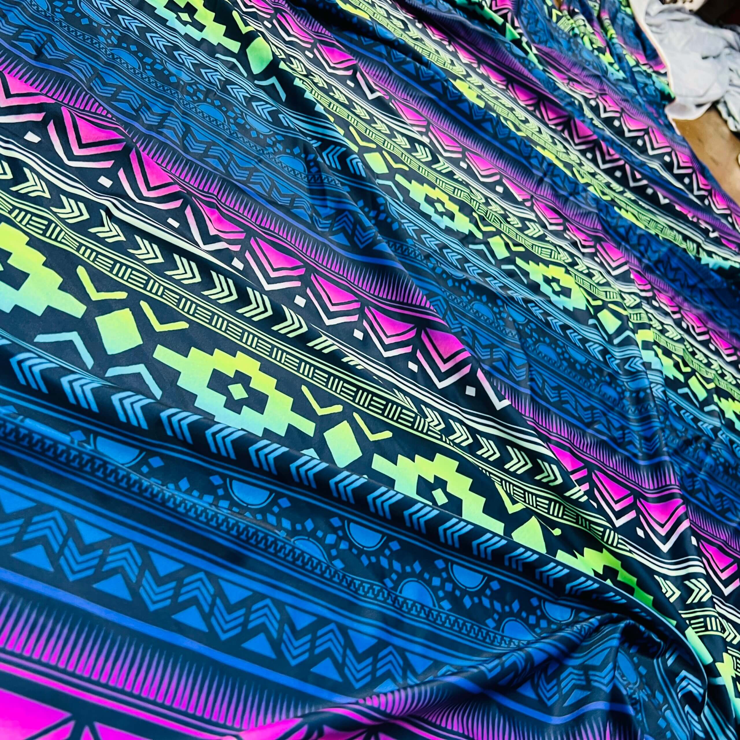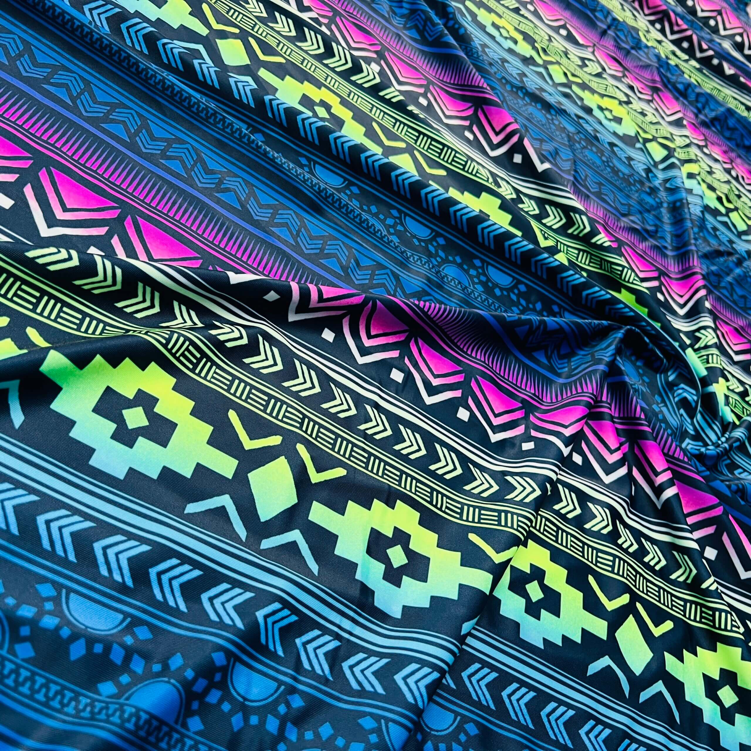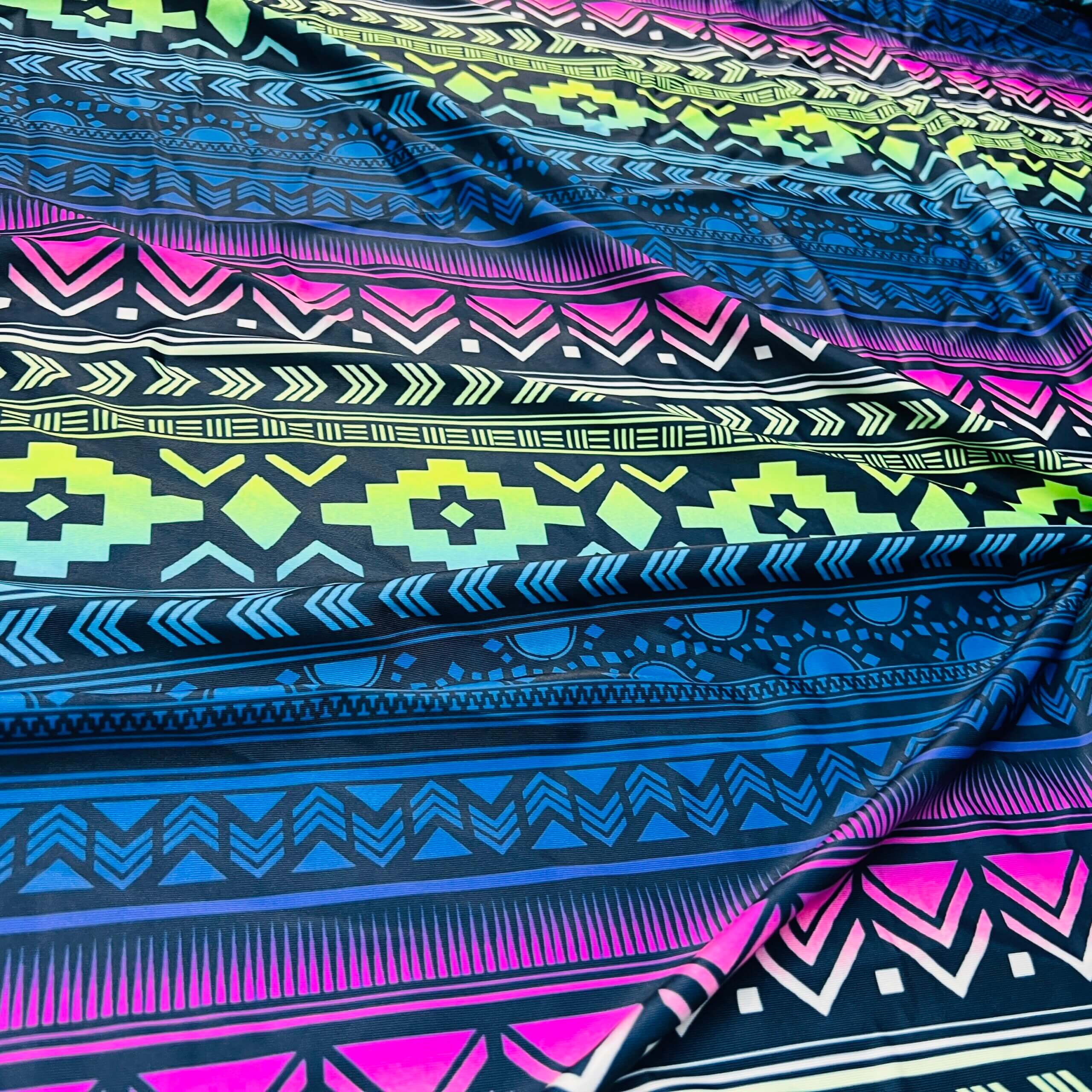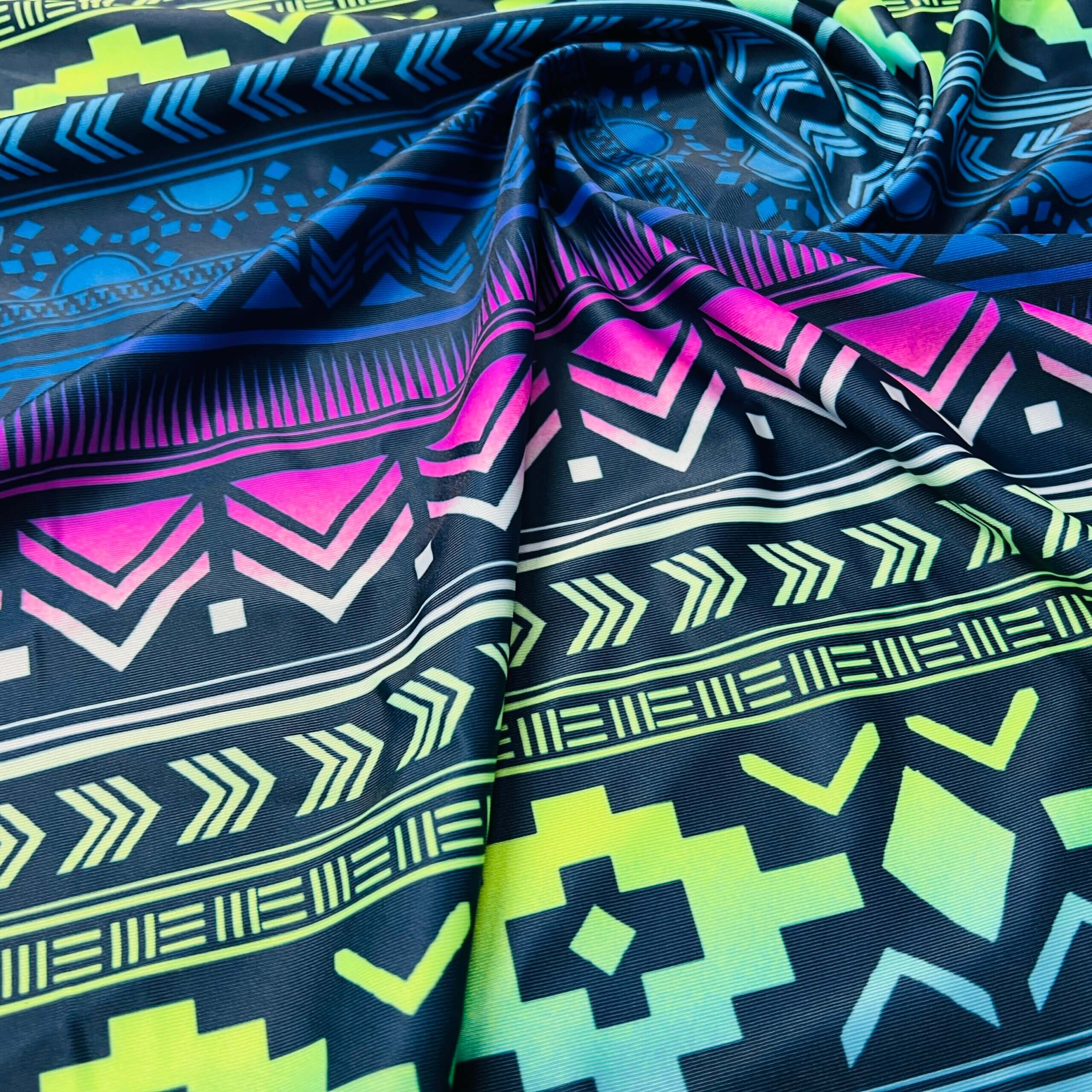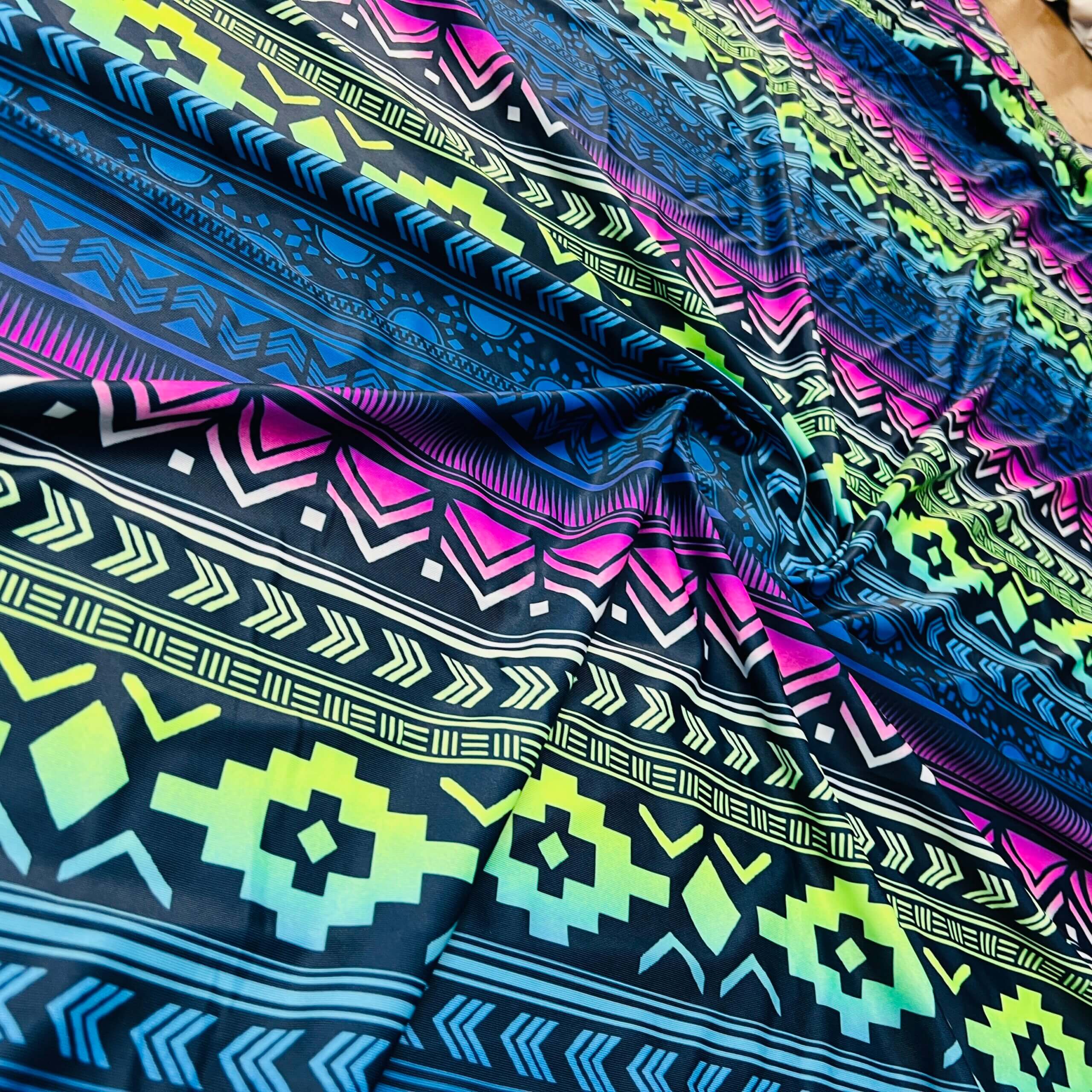 Ethnic Indian Colors Print Nylon lycra Spandex Fabric 4 Way Stretch for swimwear dancewear gymwear sportwear dress skirt