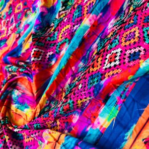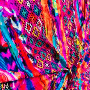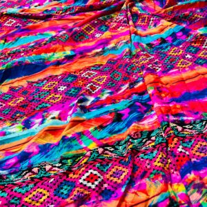 Ethnic Multicolor Neon Print Nylon Spandex Fabric 4 Way Stretch for swimwear dancewear gymwear sportwear dress skirt (203-6)