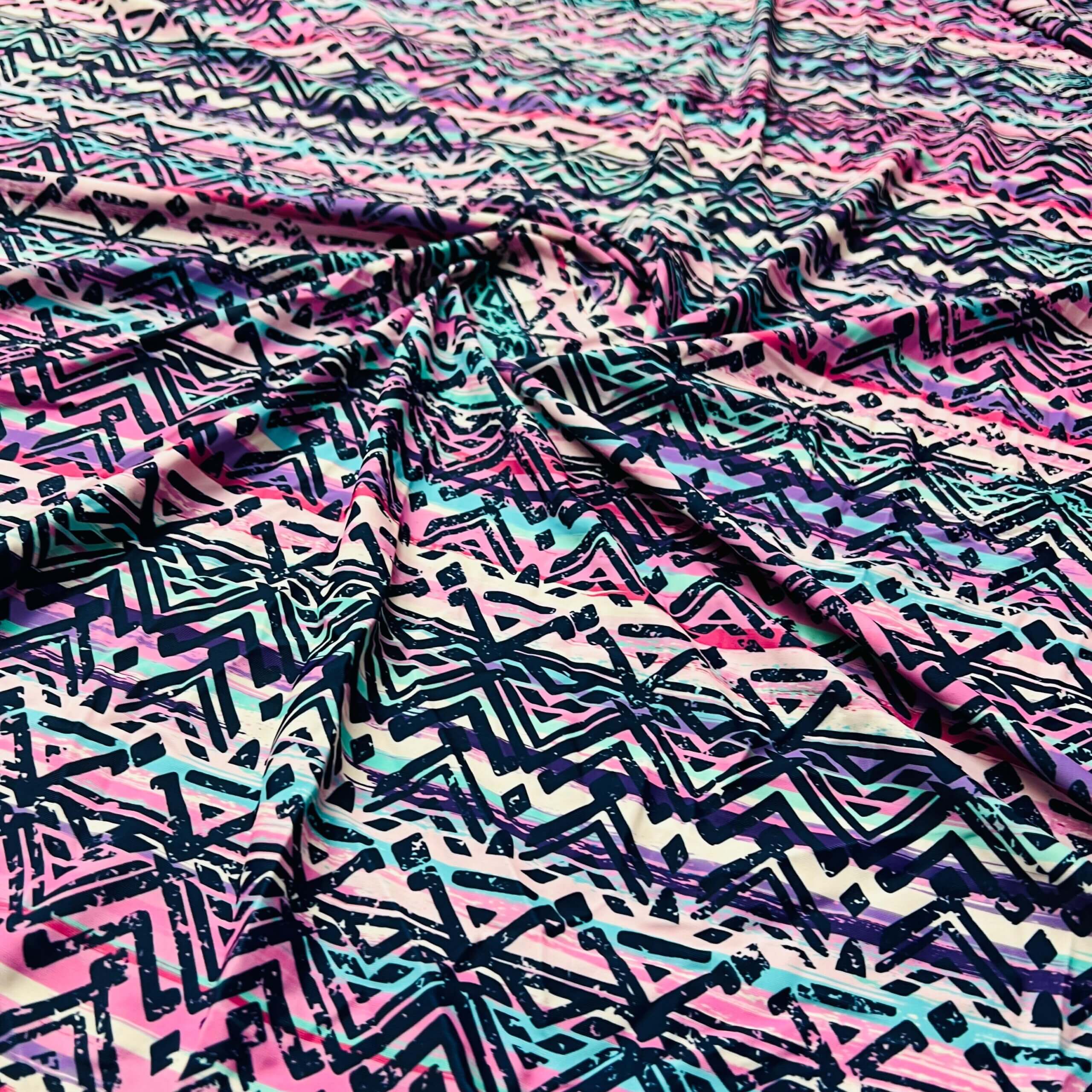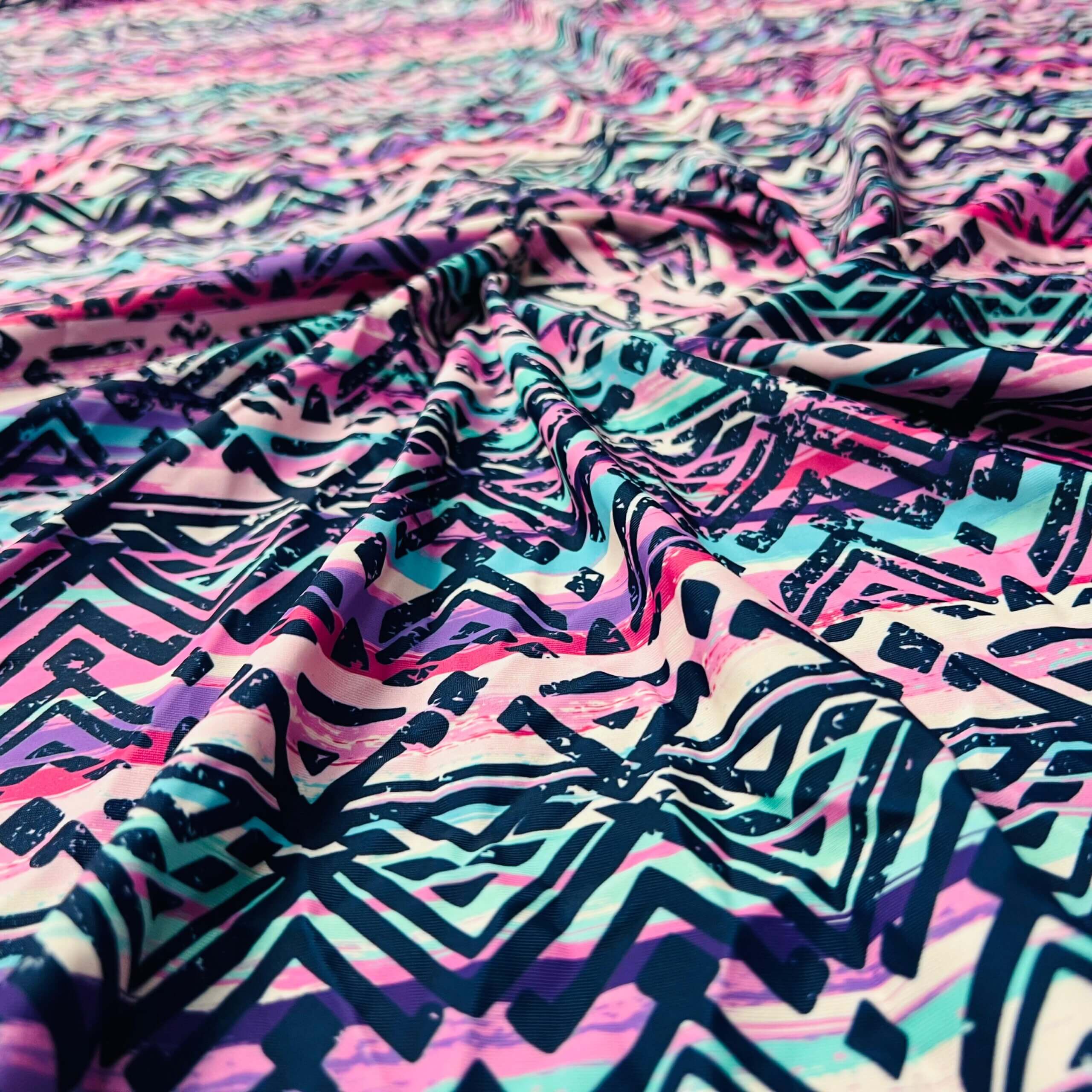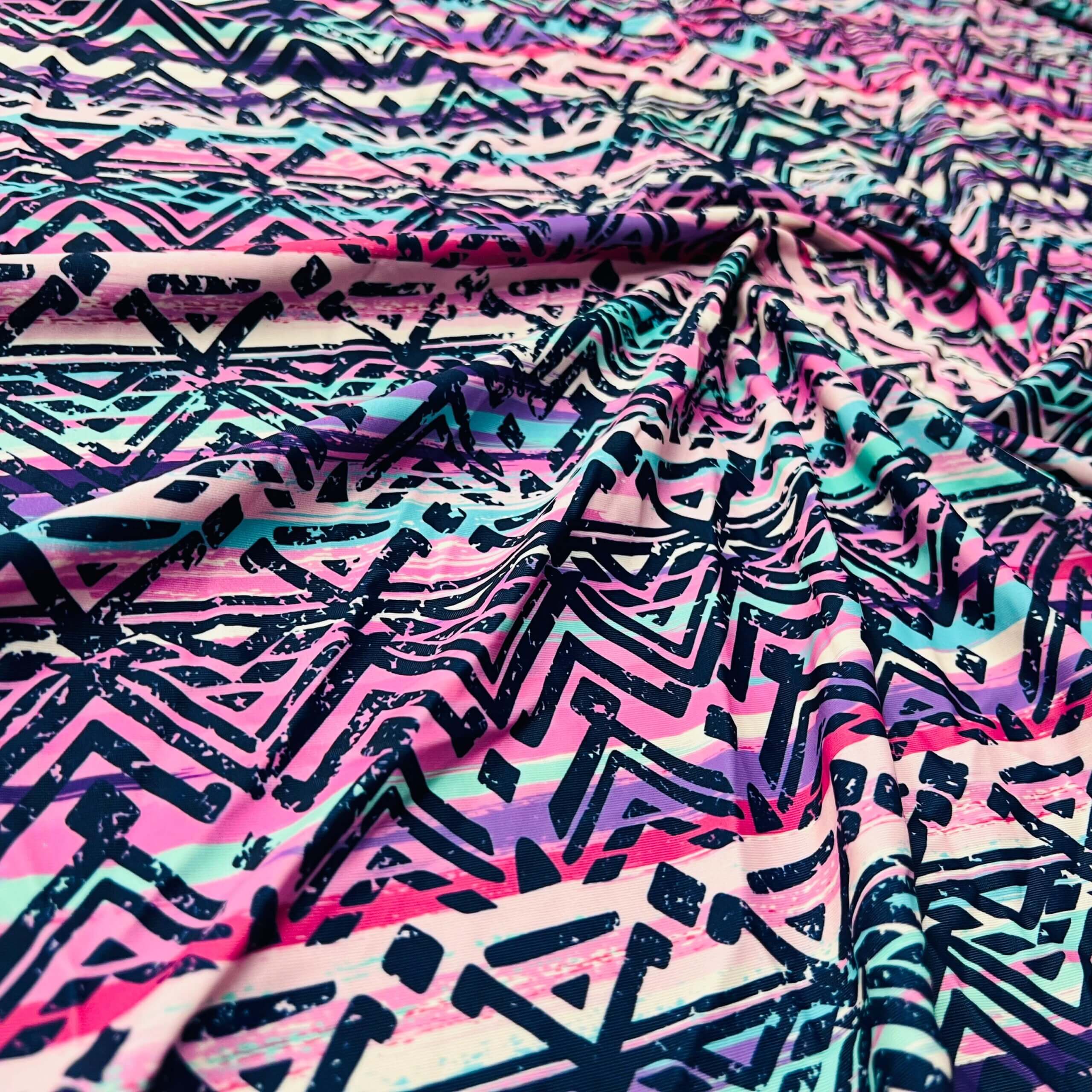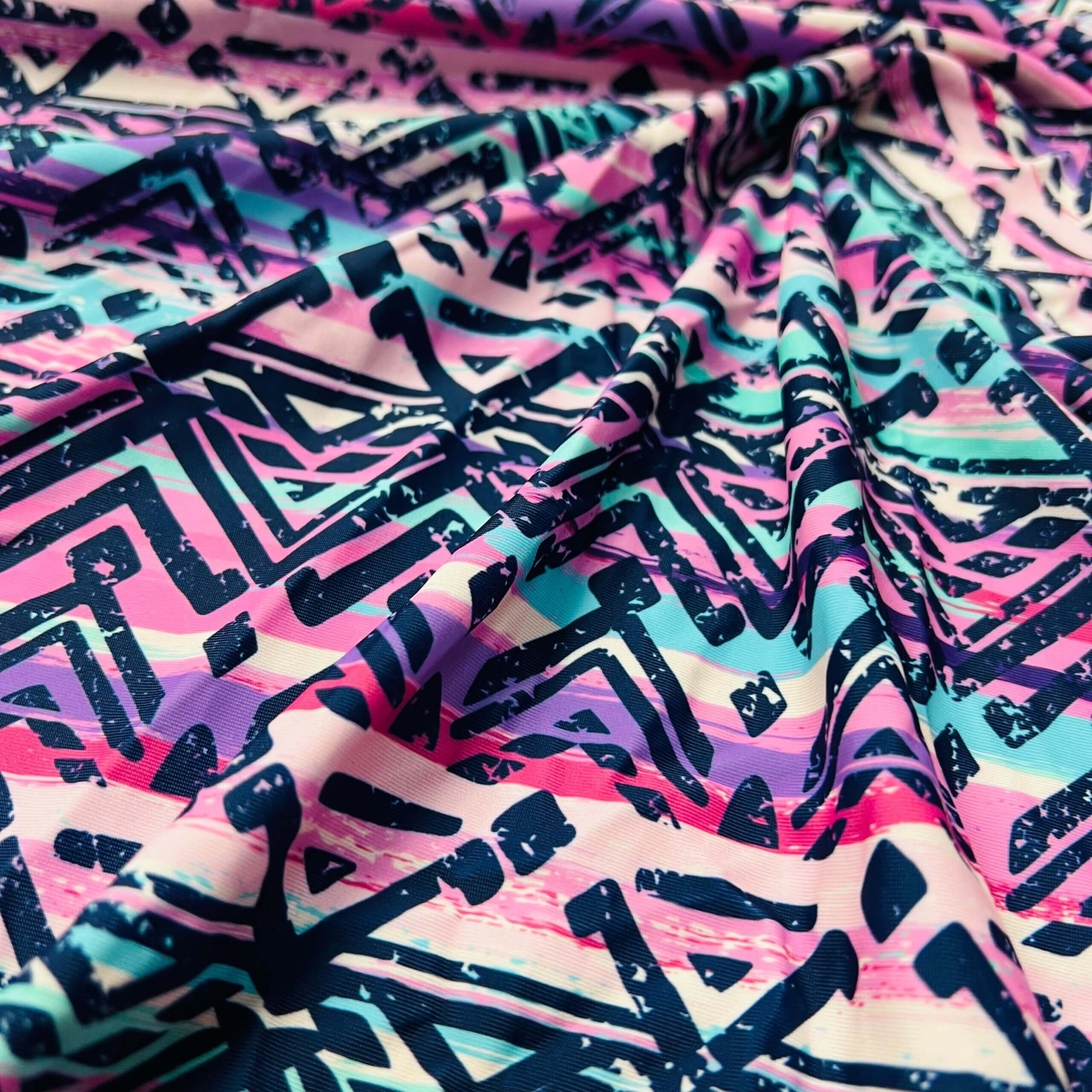 Ethnic Pastel Lines Print Nylon Lycra Spandex Fabric 4 Way Stretch By Yard for swimwear dancewear gymwear sportwear dress (239-9)