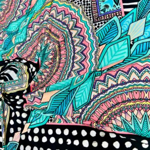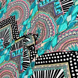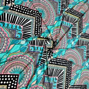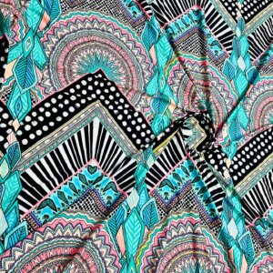 Ethnic Vintage Print Nylon Lycra Spandex Fabric 4 Way Stretch By Yard for swimwear dancewear gymwear sportwear dress skirt (203-4)