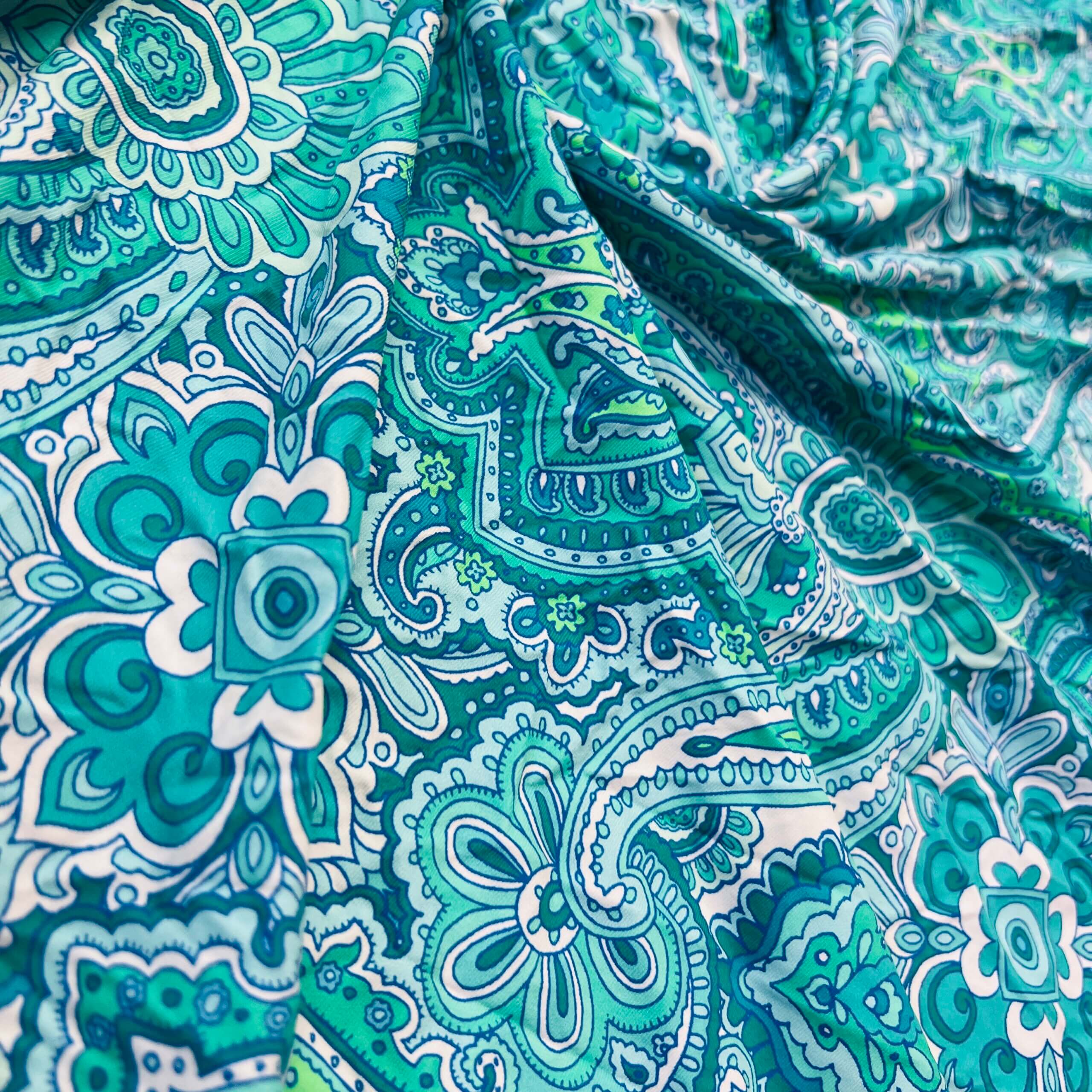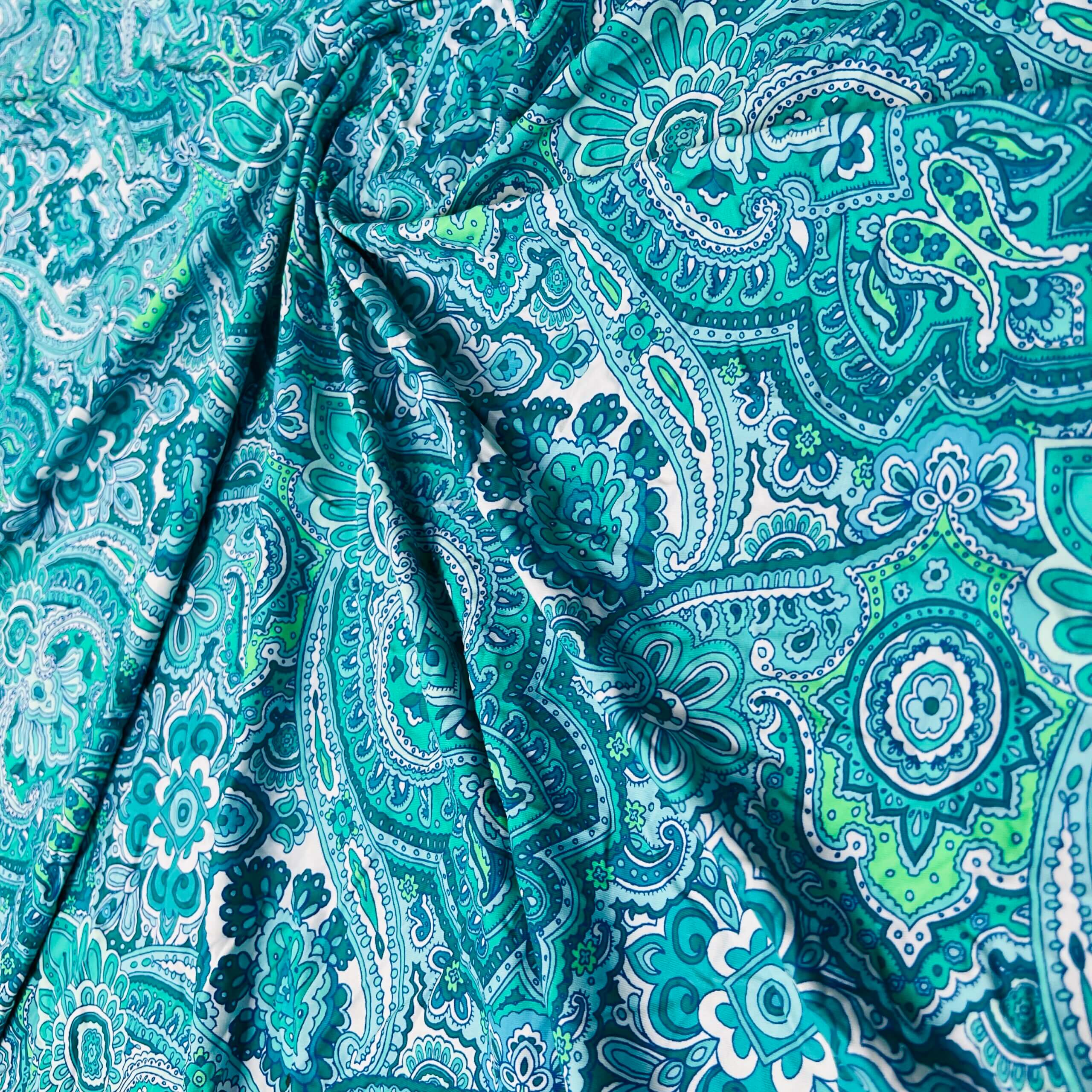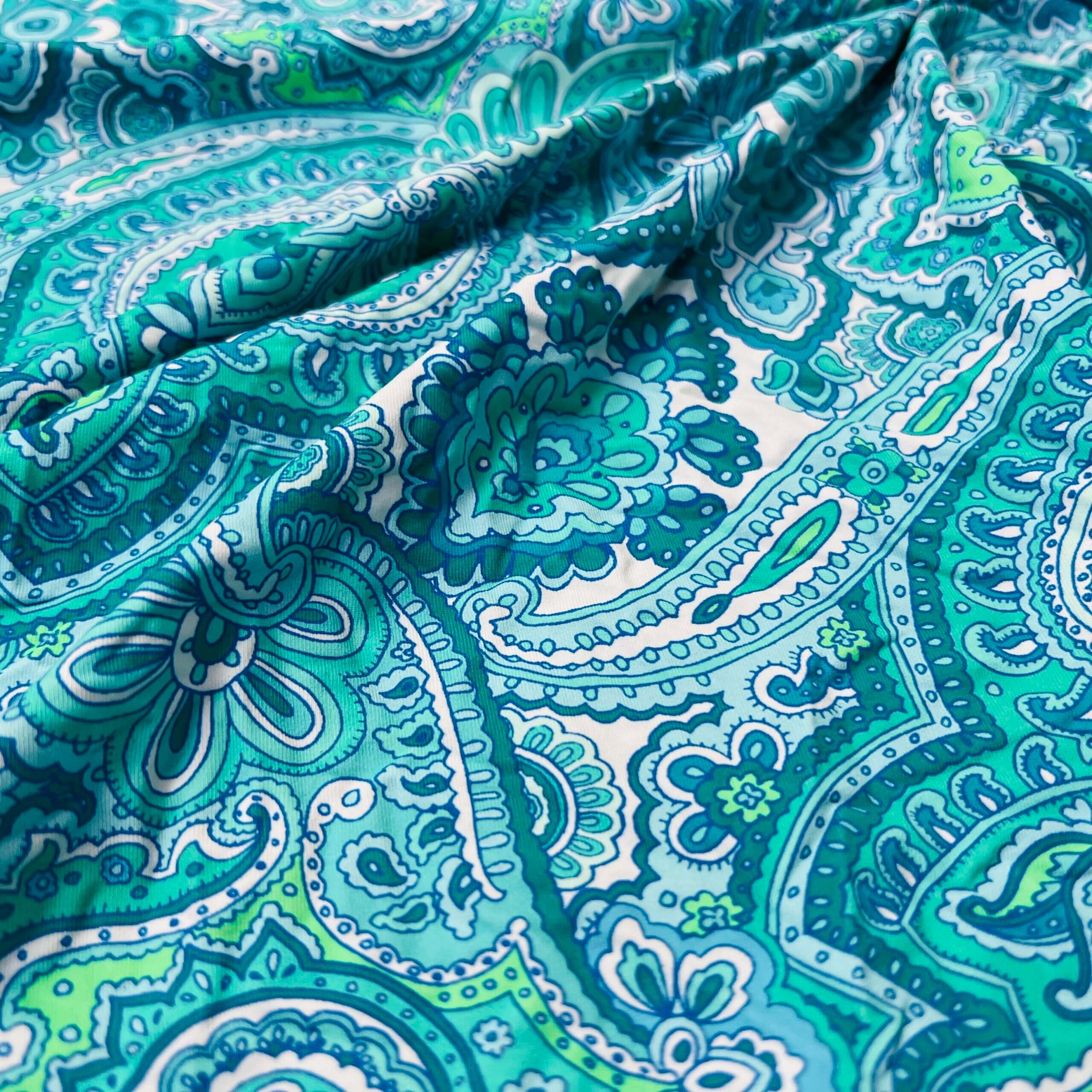 Exotic Design Paisley Blue Print Nylon Spandex Fabric 4 Way Stretch for swimwear dancewear gymwear sportwear dress skirt (239-12)