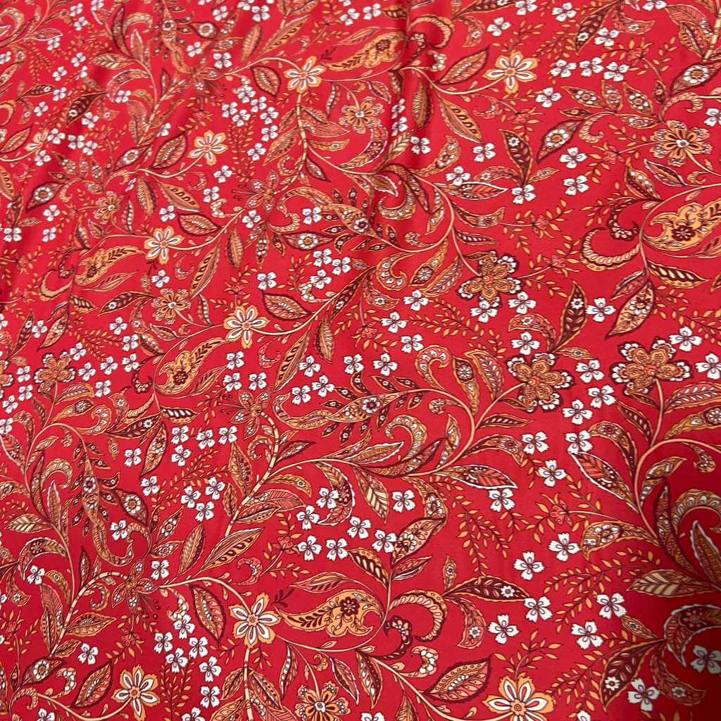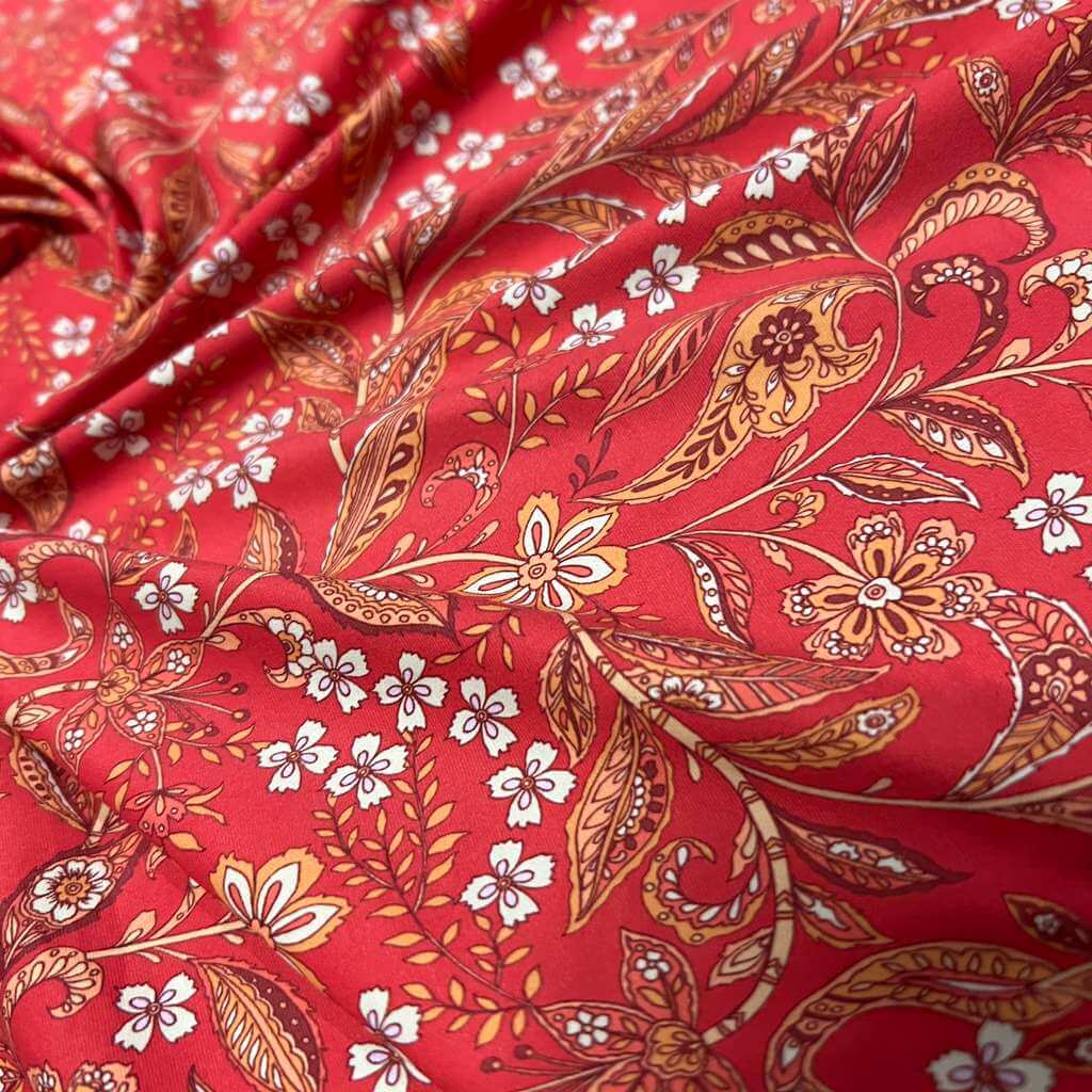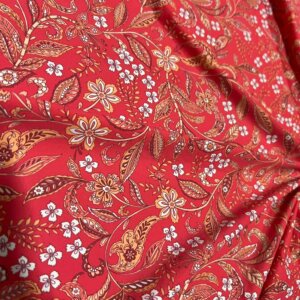 Exotic Red Flowers print Nylon Lycra Spandex Fabric 4 Way Strech by Yard for swimwear dancewear dress gymwear (159-1)(19)