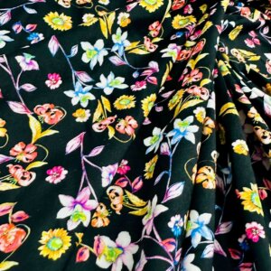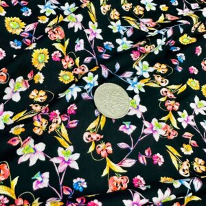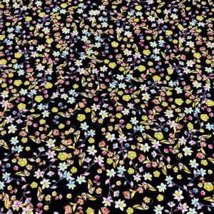 Field Flowers Black Background Print Nylon Lycra Spandex Fabric 4 Way Stretch By Yard for swimwear dancewear gymwear sportwear dress (239-5)